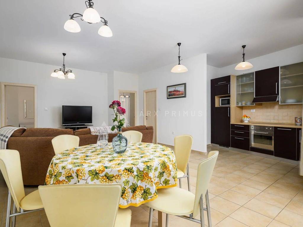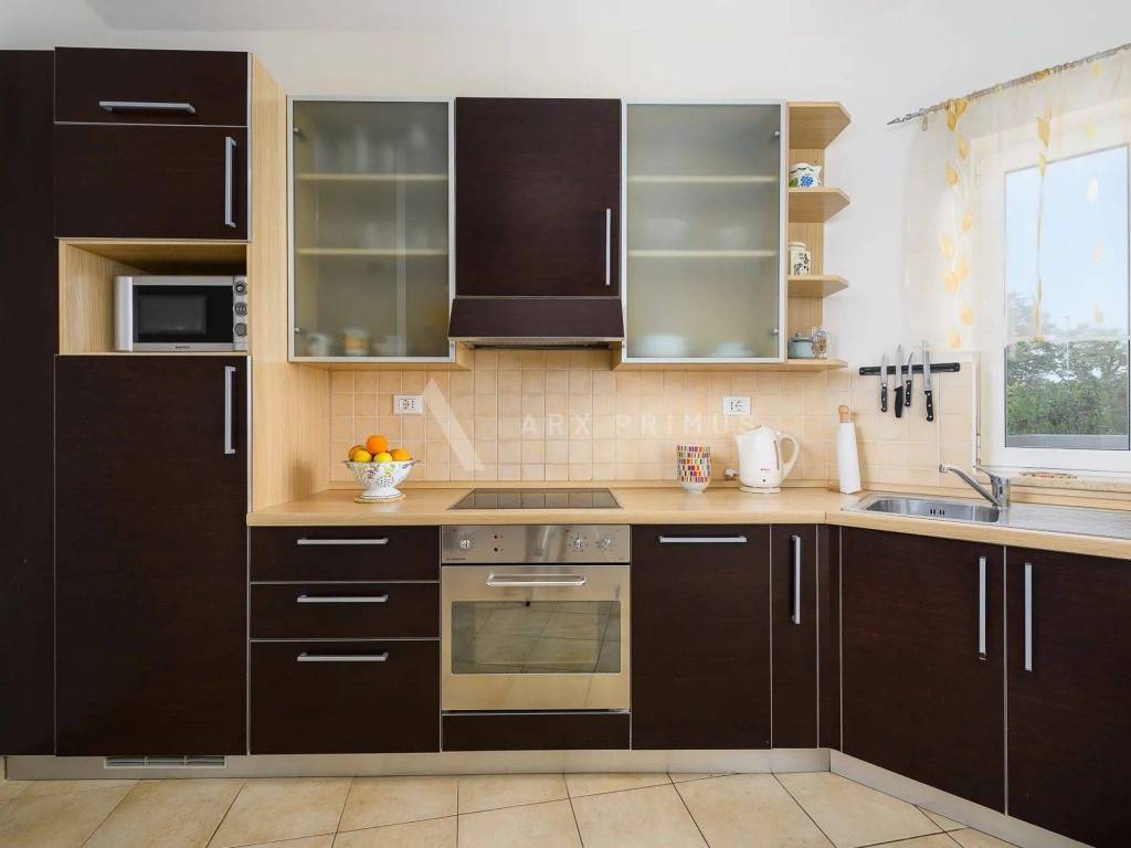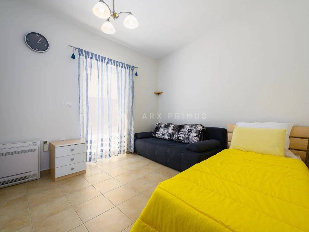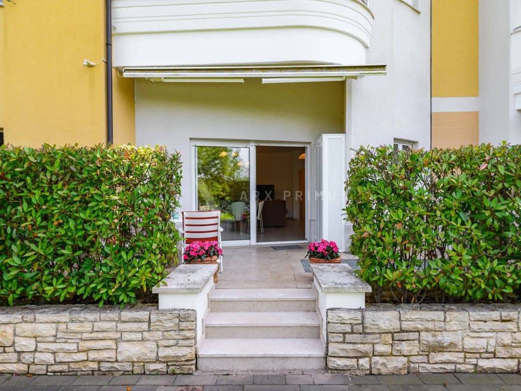 Appartamento in ottima posizione a Umago, a 150 m dal mare e dalle spiagge. L'appartamento si trova al piano terra e dispone di 2 camere da letto, un bagno, un soggiorno e una cucina, oltre ad un ampio terrazzo che conduce ad un bellissimo giardino paesaggistico. Completamente attrezzato e arredato. Condizionatore d'aria centralizzato installato. Posto auto in cortile. Una delle migliori posizioni a Umago, adatta per divertimento e investimento.