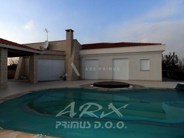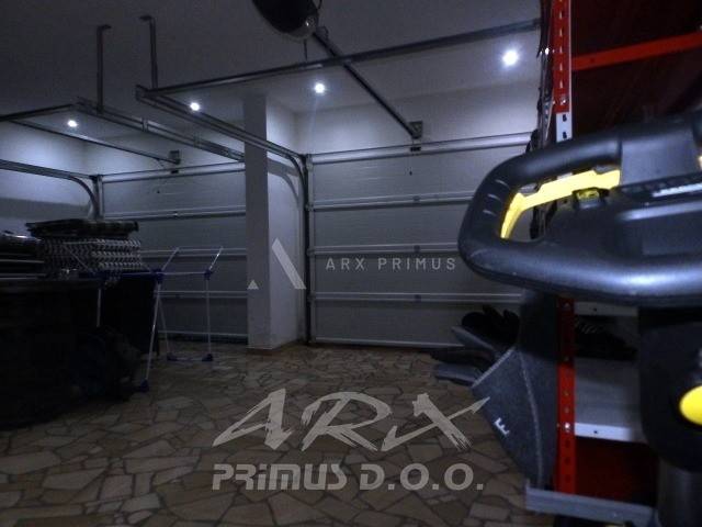 La villa ha un cortile spazioso e ben arredato con piastrelle in pietra e piastrelle e una recinzione dura. Ci sono due garage nella villa.