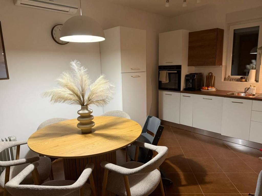 All’appartamento appartiene anche un posto auto privato. L’immobile viene venduto completamente arredato e attrezzato. La cucina è dotata di lavastoviglie, forno e piano cottura, mentre nel bagno si trovano lavatrice e asciugatrice. Nel prezzo sono inclusi tutti gli elettrodomestici piccoli. La zona pranzo è climatizzata e il soggiorno dispone di un camino con possibilità di installare una stufa a legna o a pellet, che conferisce all’ambiente ulteriore calore e comfort.