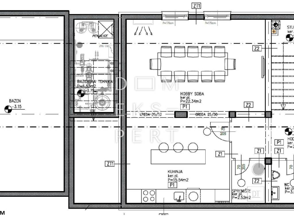 Projektom je predviđena gradnja kuće s bazenom ukupne bruto površine 258.21 m².