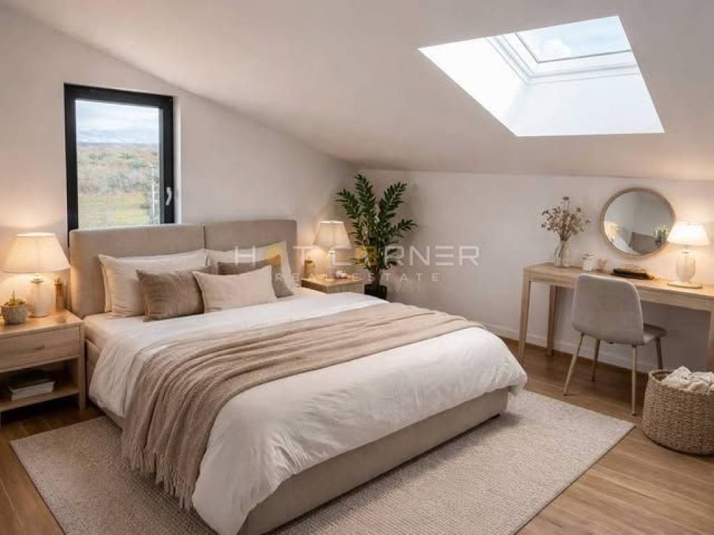 La superficie abitabile totale dell'appartamento è di 105 m² ed è composta da quattro camere da letto, una cucina collegata al soggiorno e alla sala da pranzo, un corridoio, due bagni e un'ampia terrazza. L'appartamento dispone anche di un posto auto. È dotato di riscaldamento elettrico a pavimento, aria condizionata nella zona giorno e in ogni camera da letto, che garantisce una temperatura confortevole durante tutto l'anno.