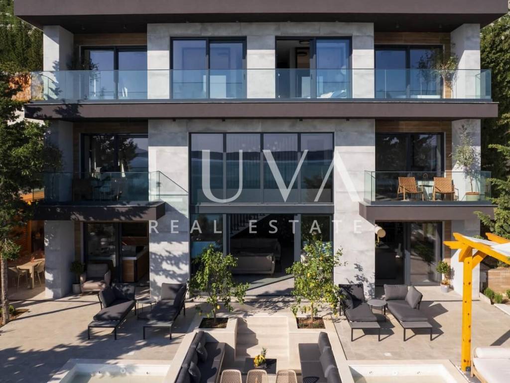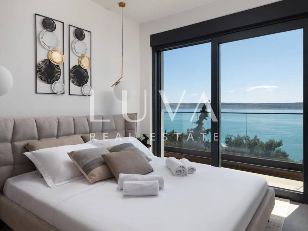 The first floor includes two comfortable bedrooms, each with its own bathroom and access to a balcony with open sea views. The top floor offers four additional luxury bedrooms with en-suite bathrooms. Thanks to panoramic glass walls, the sea view becomes part of everyday life, even from the comfort of your bed. This layout makes the villa ideal for larger families as well as for high-end tourist rentals.