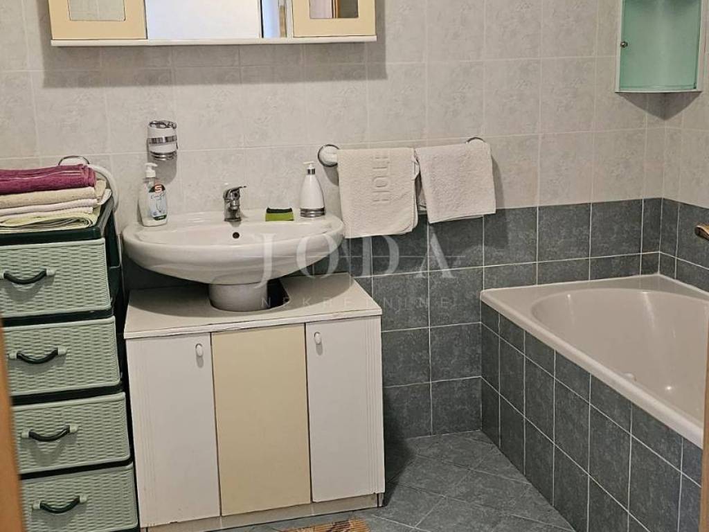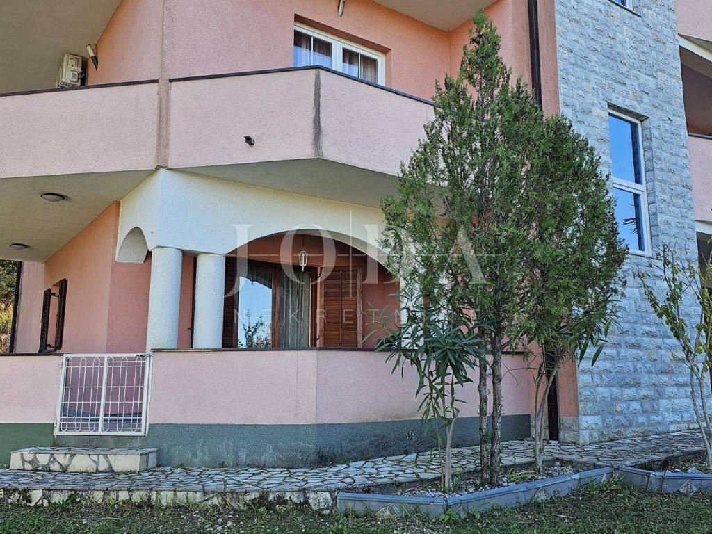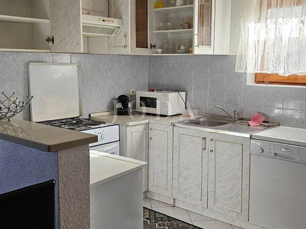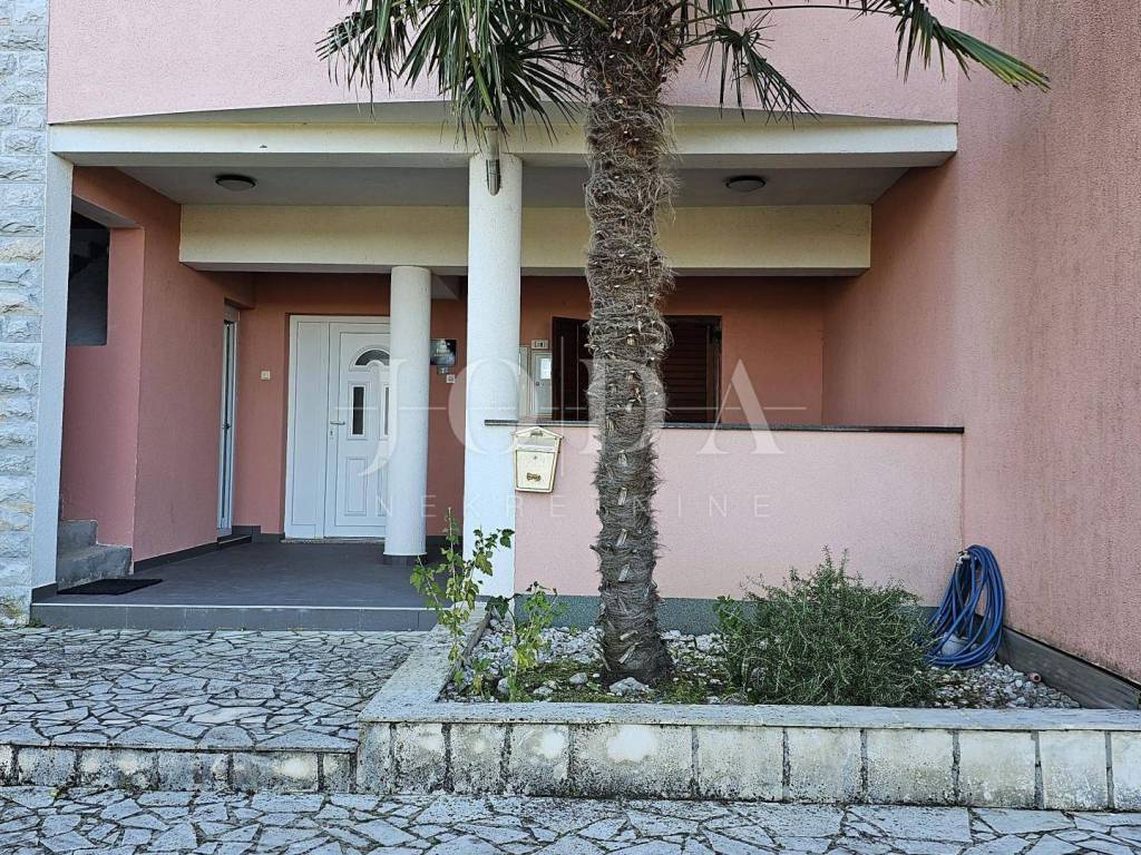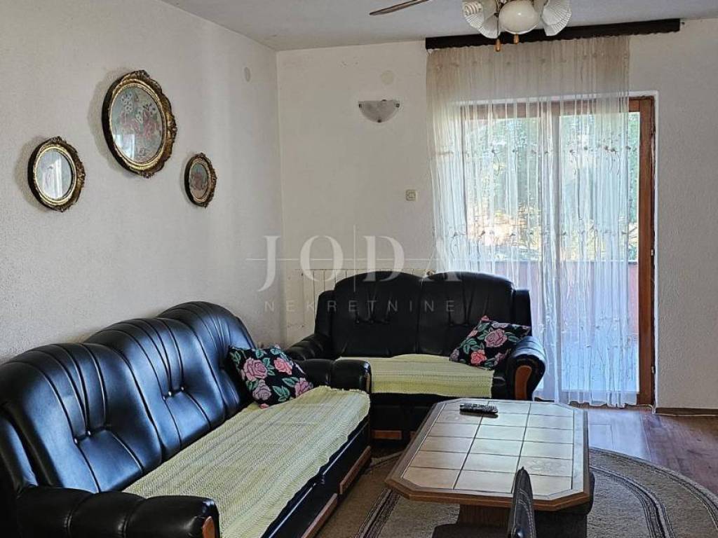 The ground floor of a family house with an attached part of the garden is for sale. The ground floor consists of two apartments and one office space. The larger apartment consists of a covered entrance terrace and entrance hall, two bedrooms, bathroom, kitchen and living room with access to the terrace. The office space is located at the next entrance, it can be converted into a mini studio. It consists of two rooms and a bathroom. The smaller apartment consists of a covered area, entrance hall, kitchen and living room and bathroom.