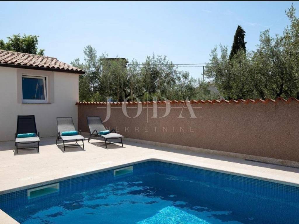 In the vicinity of Pula, the largest city of the Istrian County and only five kilometers from the sea, this house with a swimming pool is for sale.