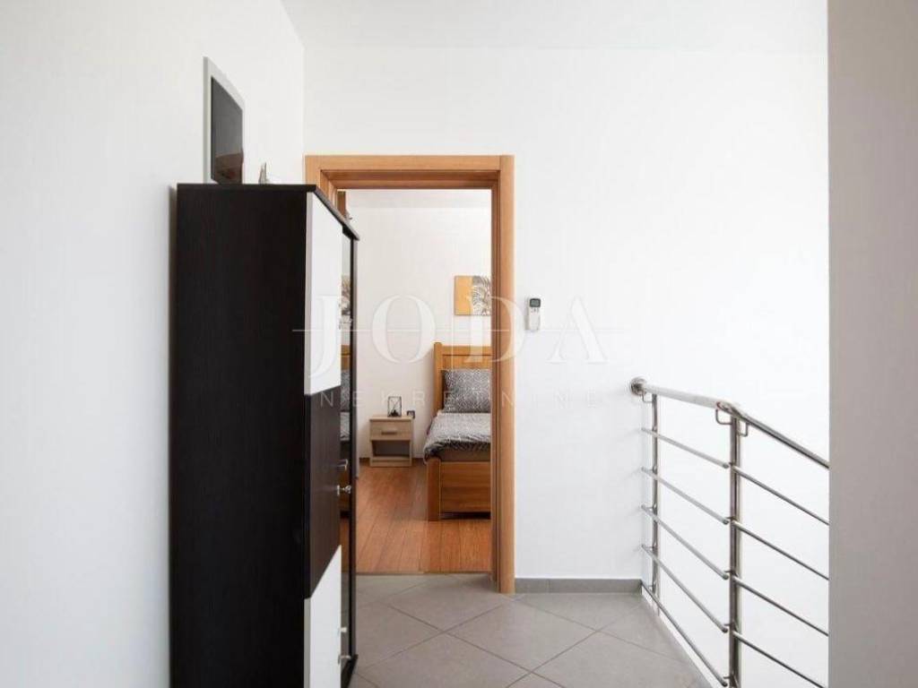 There are three bedrooms, two bathrooms and a large terrace on the first floor.