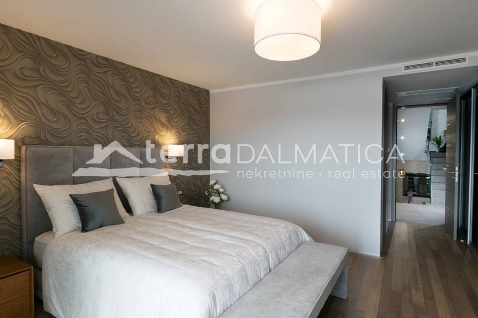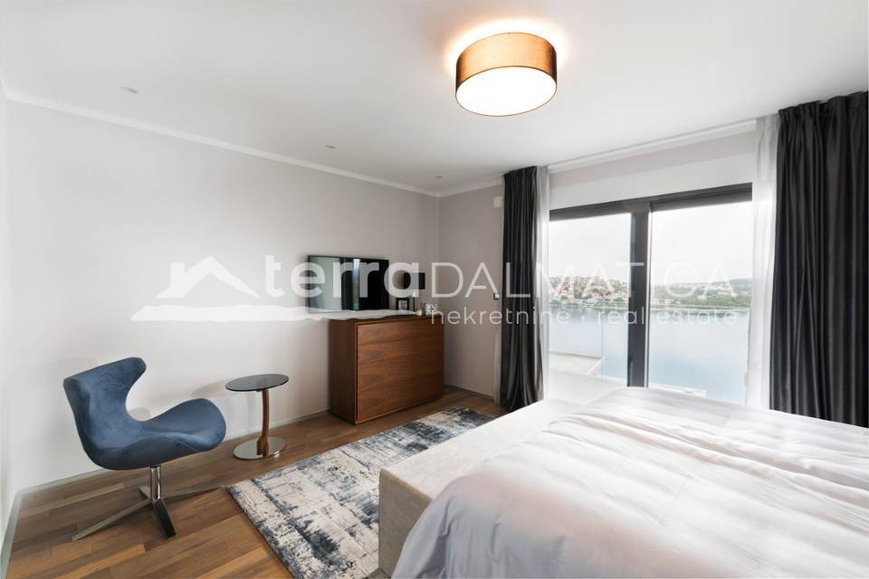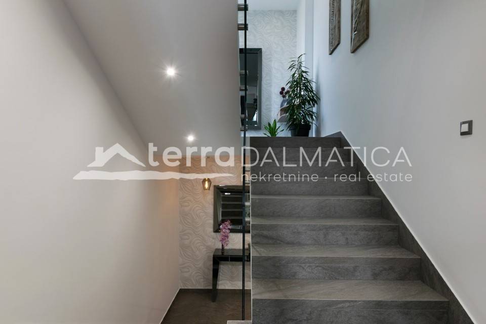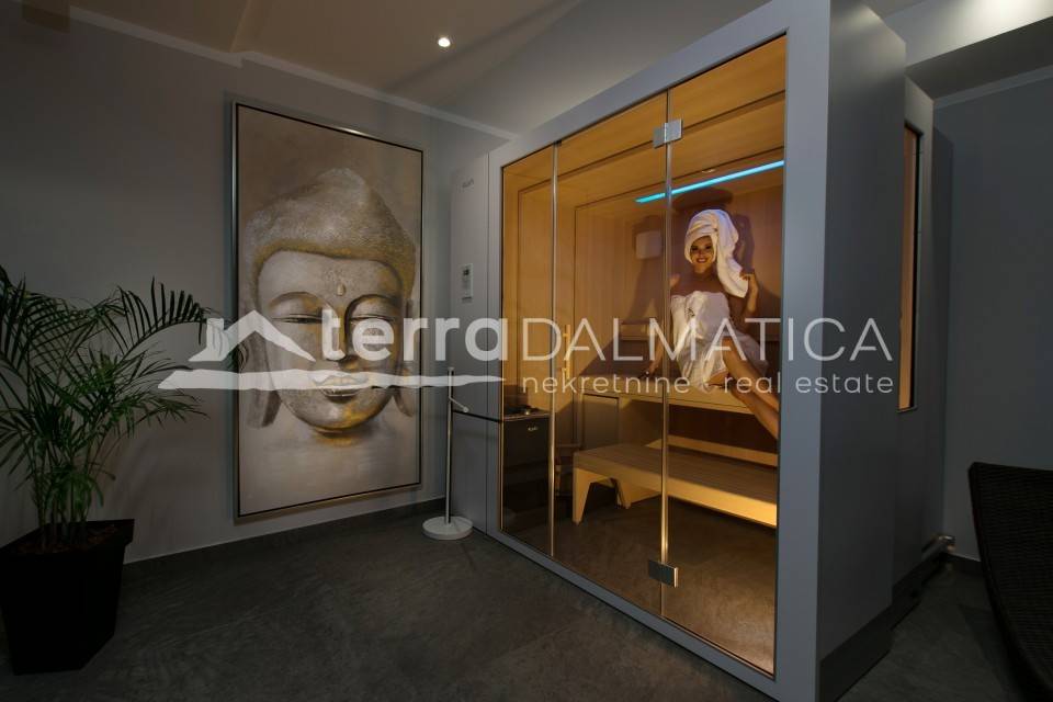 It is located in a quiet area near Rogoznica. It is surrounded by nature and the clear blue of the Adriatic. The land is gently sloping, so each floor offers a fantastic view of the sea and the picturesque archipelago. The villa is modernly decorated and superbly equipped: a wellness area, a hot tub, an elevator and other amenities guarantee complete comfort. It is ready to move in immediately.
