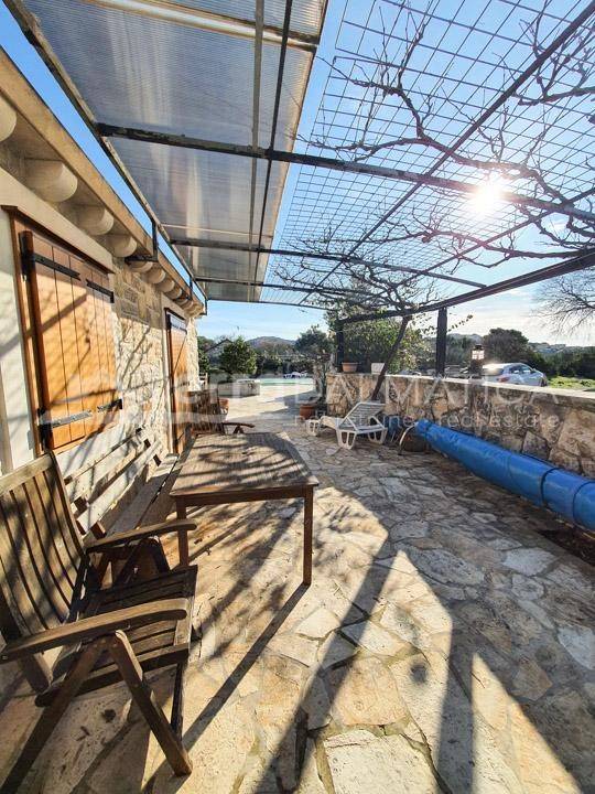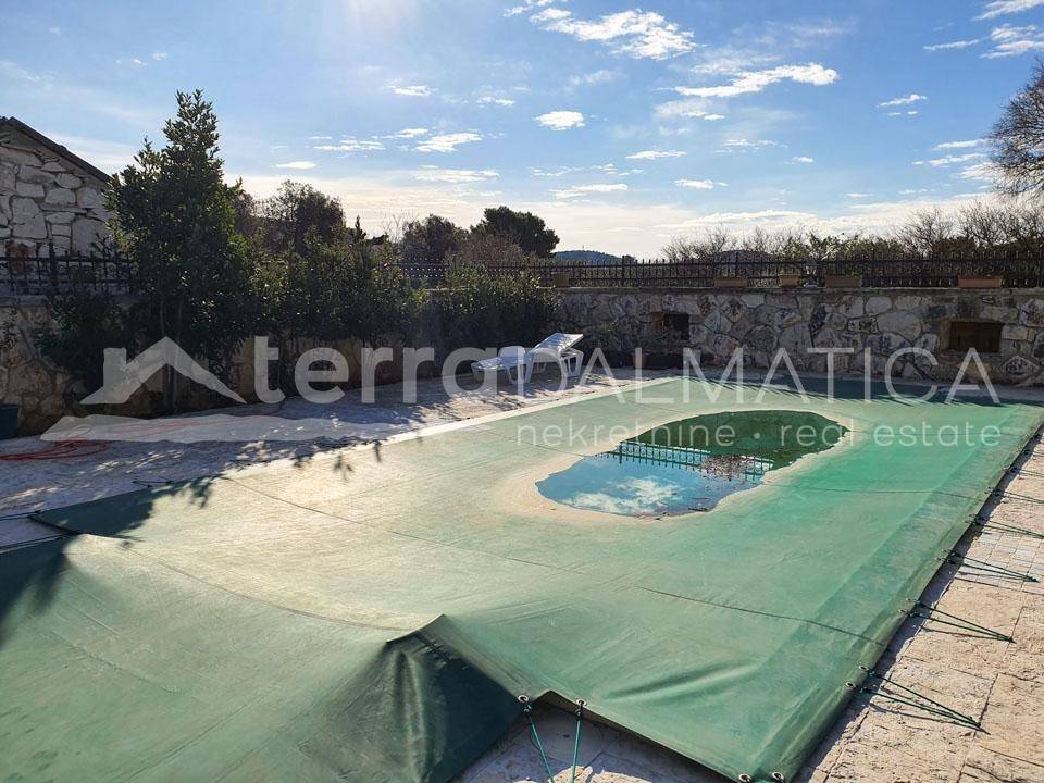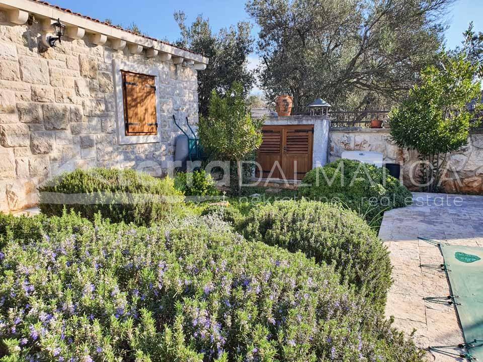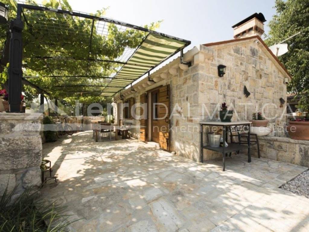 This extraordinary stone property is located near the center of Rogoznica. It has been thoroughly renovated from the ground up and adapted to a modern lifestyle. During the renovation, new walls with a thickness of 60 cm were made with insulation, stone gutters were installed and all originality was restored, but with new and modern materials. The renovation process lasted four years. All joinery is made of Arish (extremely high-quality and resistant type of wood that was also used in the past when making doors and windows) with double insulating glasses. The estate consists of two ground-floor stone houses. The first house is smaller, with a total square footage of approx. 100m2. It consists of one bedroom, bathroom and kitchen with living space of approx. 30m2 in one unit. The owners are currently using it as a party house, and it is furnished that way. The central space is dominated by a large oak table with benches and chairs, the total weight of which is more than 800 kilograms. A large fireplace has been built inside the house, around which the company gathers with special pleasure. There is a wine cellar in the basement of this house. It is made entirely of concrete with very good insulation and air circulation with a fan. All rooms are air-conditioned. In front of the house is a terrace, during the summer it is protected from the sun by natural greenery, next to the terrace is an outdoor stone sink and another movable outdoor grill. The second house has a total square footage of approx. 160 m2. It consists of three bedrooms, two bathrooms, a kitchen, a living room, a workshop, a technical room with a laundry room and an attic. The master bedroom has its own bathroom. In the living room, there is a Montegrappa fireplace with remote control, which functions according to the air heating system and guarantees a high thermal effect with low fuel consumption and reduced emission of environmental pollution. Underfloor heating is installed in the bathrooms, kitchen, living room and hallway leading to the master bedroom. The house is air-conditioned with four indoor and one outdoor unit. The entire property is covered by video surveillance and an alarm system. There are solar panels on the house. In front of the house is a swimming pool of approx. 32m2 with a built-in massage system and counter-current swimming. The yard is beautifully decorated with local plants and flowers, and it is dominated by a hundred-year-old tree that provides deep shade during the summer months. The property is located on a plot of approx. 850 m2. Parking for several cars is located right in front of the entrance to the property. Almost all furniture, except for a few special pieces and personal items, is included in the price. Another feature of this property is its location of approx. 250 m from the sea and the beach, about 10 minutes' walk to the center and a few minutes to the first shop, and still within a quiet area surrounded only by nature. Contact our agent and schedule your tour.