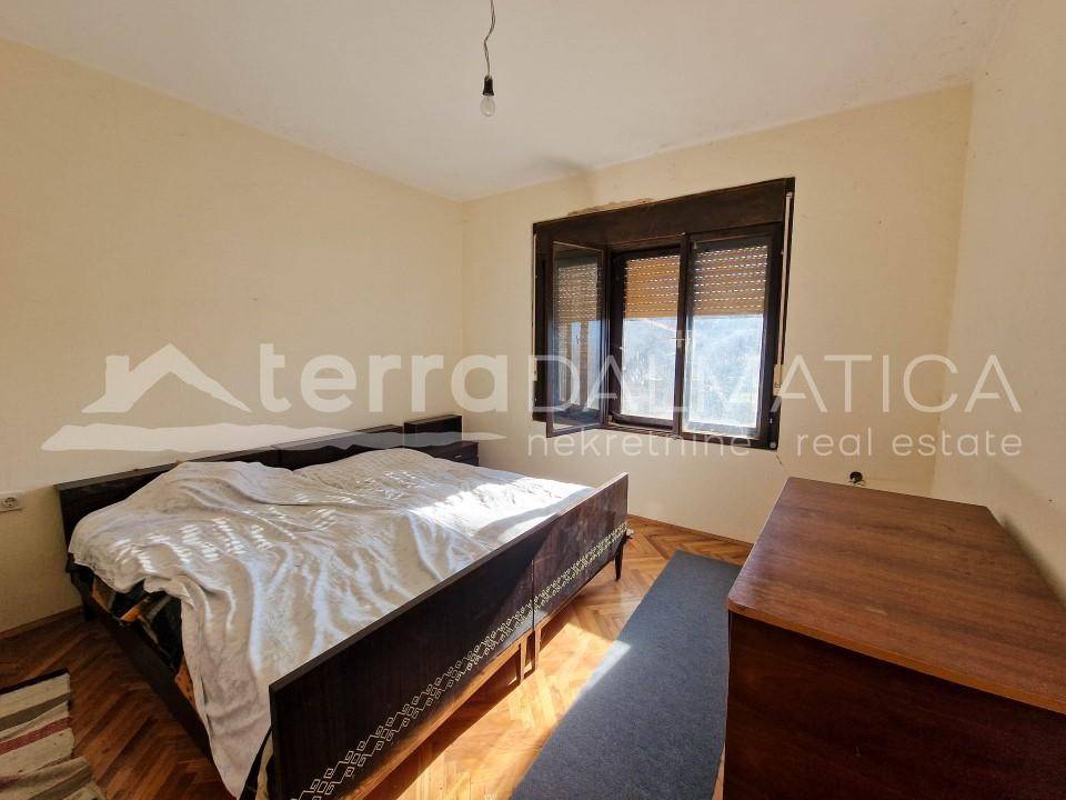 In Biskupija, only a 15-minute drive from the center of Knin, a family house with two apartments and a basement is for sale. If you are looking for a house in a quiet, rural environment, yet close to the city, this is the right opportunity for you. The house of 246 m2 consists of a basement, ground floor, first floor and attic. The ground floor and first floor are separate residential units with a kitchen, living room, two bedrooms and a bathroom, interconnected by an internal staircase. The attic is spacious and can additionally be made into another residential unit. The house is connected to water and electricity, and with a small renovation, it is ready to move into. Contact our agent and arrange a tour of the property