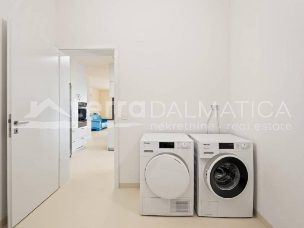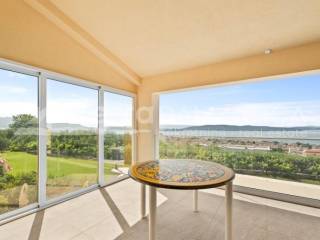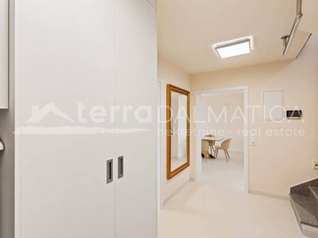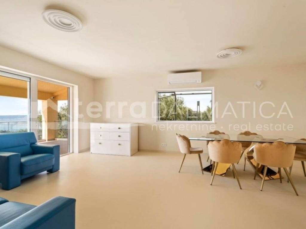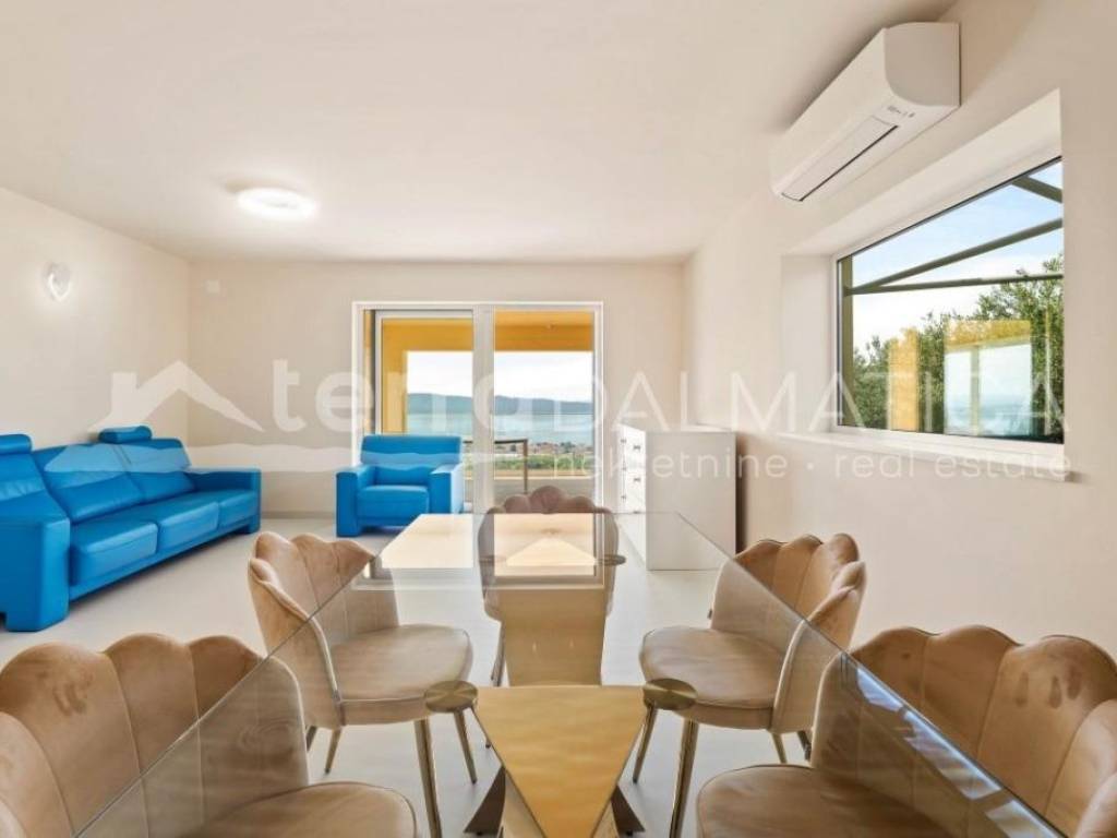 Situated in the picturesque town of Kastel Gomilica, Croatia, this recently renovated villa, under Swiss-German ownership, epitomizes luxury and elegance. Spanning two plots with a combined area of 1,900 m², the property is surrounded by lush greenery and offers stunning views of the Adriatic Sea. The villa's southern and southwest orientation ensures it is bathed in sunlight throughout the day, creating a serene and peaceful ambiance. The main house, spread over two floors, boasts a spacious 184 m². It features four bedrooms, two high-quality bathrooms equipped with Villeroy & Boch fixtures, and two large terraces (22 m² on the ground floor and 28 m² on the upper floor), perfect for enjoying panoramic sea views. The villa includes a separate guest area with its own bathroom, bringing the total living space to over 200 m². This luxurious villa is in excellent condition, having been recently renovated to the highest standards. The kitchen is a chef's dream, equipped with a granite stone countertop, Miele appliances, and a Bosch refrigerator. The open design seamlessly integrates the dining area, making it ideal for entertaining. The villa also includes a utility room and a garage. Energy efficiency and sustainability are key features of this property, with 34 solar panels covering most of the house's energy needs. The house has electric underfloor heating powered by solar energy and is equipped with six air conditioning units for year-round comfort. Special attention has been given to security and privacy. The entire estate is enclosed by a protective fence. A state-of-the-art surveillance system with six video cameras records all movements, ensuring peace of mind. There are three high-security doors and lockable lift-and-slide windows, providing maximum security. The villa offers a wealth of high-quality amenities and finishes. It is partially furnished with premium pieces, including De Sede furniture from Switzerland, HASENA bedding, and a Sicilian lava stone table on the terrace. Custom-built wardrobes in the master bedroom and entrance closet provide ample storage space. Outdoor amenities include a beautiful garden, a luxurious outdoor pool, and a hot tub. The property also boasts a covered carport for four vehicles, with additional parking space for three more cars. It features its own well and a rooftop feed into the well for the irrigation system, as well as two protected rainwater collectors with an 800-liter capacity. The villa is equipped with an intercom system, internet, and satellite TV. Despite its excellent transport connections, the villa is situated in a quiet hillside location, offering complete privacy and an intimate guest apartment. The coastal setting provides the perfect blend of city and sea views, making this luxury villa in Kaštel Gomilica a unique opportunity to own a piece of paradise in Croatia. Its blend of modern amenities, high-quality finishes, and sustainable features make it an exceptional investment for those seeking a private and peaceful lifestyle.