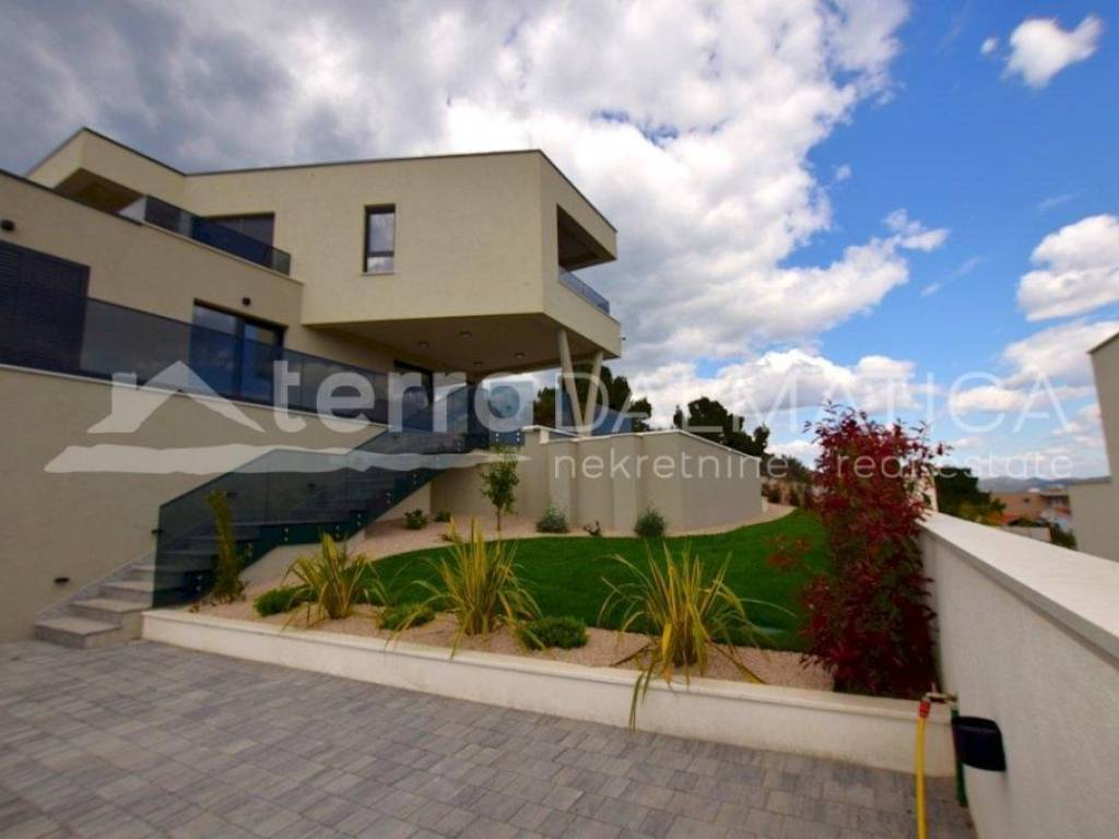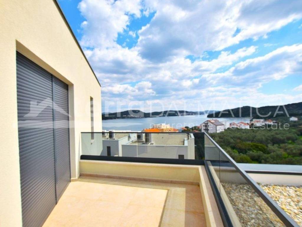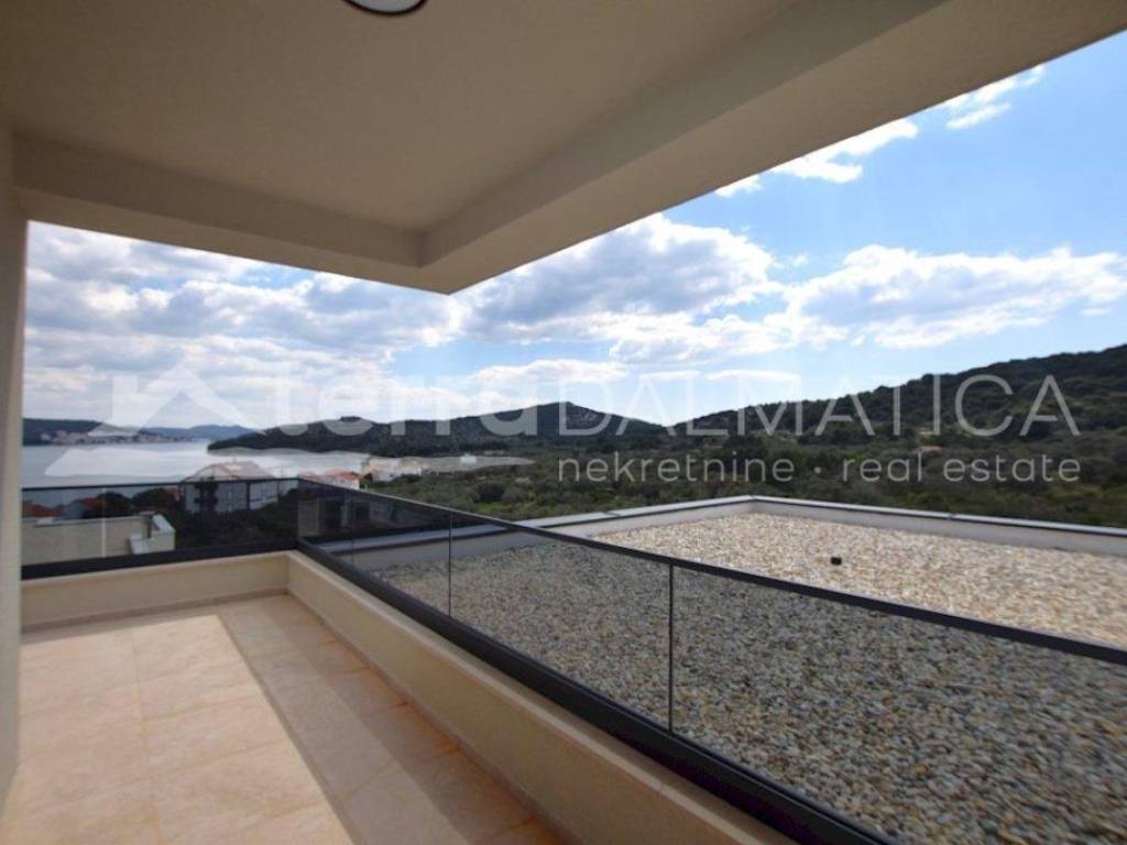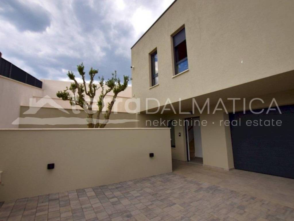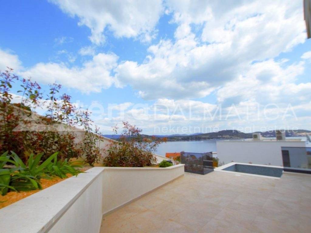 For sale: A first-class villa in the enchanting village of Betina on the island of Murter, combining luxury, comfort, and modern design. Situated on a spacious 648 m² plot, it lies just 150 meters from the crystal-clear sea and beautiful beaches. The villa has a living area of 253 m² and is built according to the latest construction standards using the highest quality materials. It features an elegant style with touches of Mediterranean charm, a thoughtfully designed layout, clean architectural lines, and floor-to-ceiling glass walls. Spacious terraces and glass railings allow unobstructed sea views from almost every room, while underfloor heating, air conditioning, and top-quality joinery ensure year-round comfort. The main terrace boasts a swimming pool with a sea view, surrounded by a Mediterranean-style garden with ambient lighting and glass fencing. The villa is spread over three levels – basement, ground floor, and first floor – with an interior carefully designed to maximize both comfort and functionality. The basement includes a spacious garage, storage room, and laundry area. Interior stairs lead to the main floor, which features an open-concept living area consisting of a living room, modern kitchen, and dining space. This floor also includes two spacious bedrooms with private terraces, a bathroom, and an additional guest toilet. On the first floor, there are two more bedrooms. The third bedroom has a private bathroom and access to a terrace, while the master bedroom includes an en-suite bathroom, walk-in wardrobe, and a large terrace with panoramic sea views – perfect for enjoying peace and tranquility. The villa is equipped with video surveillance, insect screens, and security systems, offering complete privacy and peace of mind. Betina is a picturesque village on the island of Murter, known for its crystal-clear sea, shipbuilding tradition, and preserved Dalmatian architecture. Murter is the largest settlement on the island, offering stunning beaches, pristine waters, and close proximity to the Kornati archipelago. These locations seamlessly blend natural beauty, rich history, and authentic Mediterranean charm, making them ideal for relaxation, savoring local cuisine, and exploring nearby attractions. This villa offers everything needed for complete privacy, luxury, and enjoyment of the Adriatic coast. Don’t miss the opportunity to become the owner of this unique property!