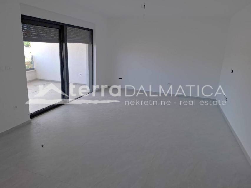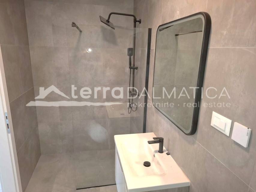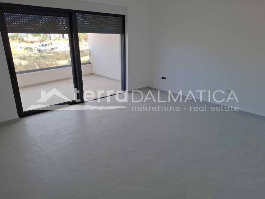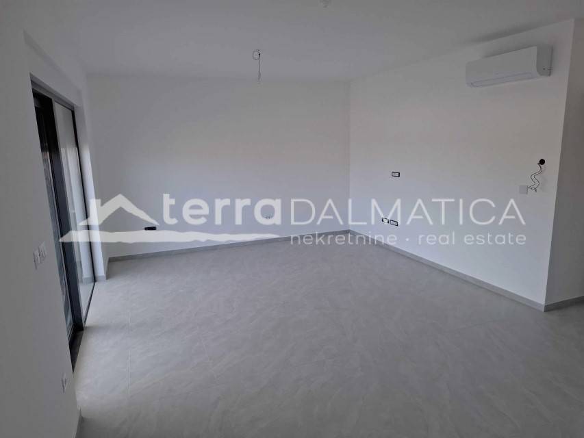 For sale is a modern and spacious apartment located on the second floor of a newly built residential building in a quiet part of Vodice. The apartment with a total living area of 78.40 m² consists of a hallway, living room, kitchen with dining room, two bedrooms, bathroom and separate toilet. It also has a covered terrace of 18.50 m², perfect for relaxing and enjoying warm days. The total area of the apartment with the associated parking space is 81.40 m².