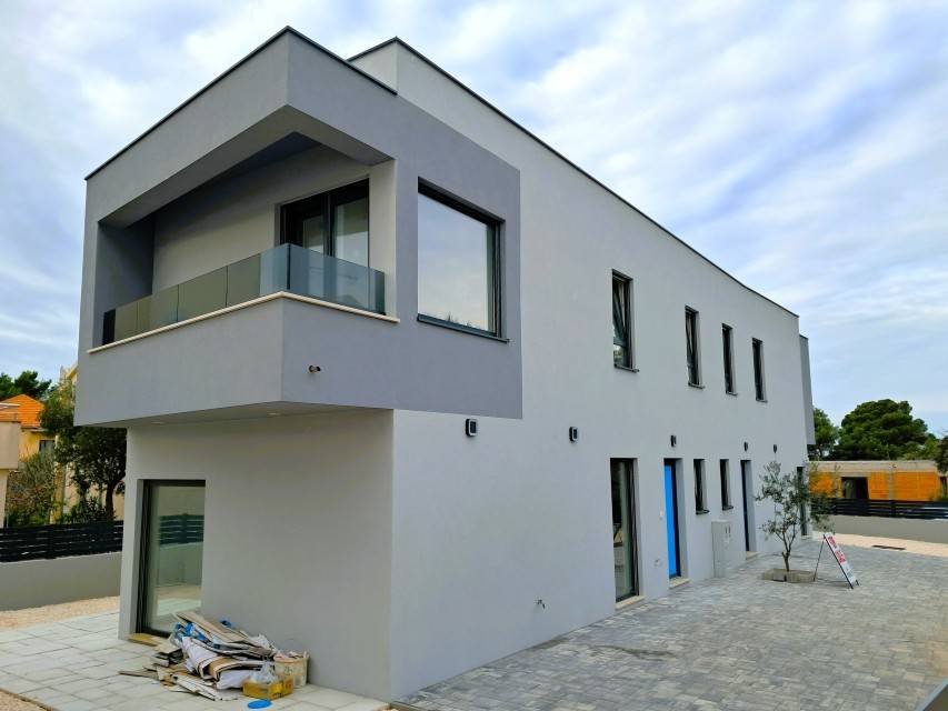 A modern semi-detached house (new construction) is for sale, with a total living area of 99.70 m² in a quiet and sought-after settlement Žaborić, close to the town of Šibenik. located only 70 meters from the sea. The property is located in the immediate vicinity of all necessary amenities, while at the same time providing privacy and peace.
