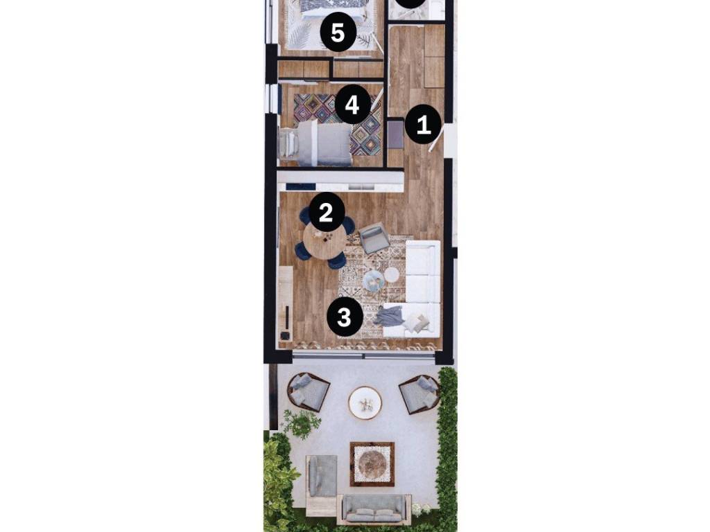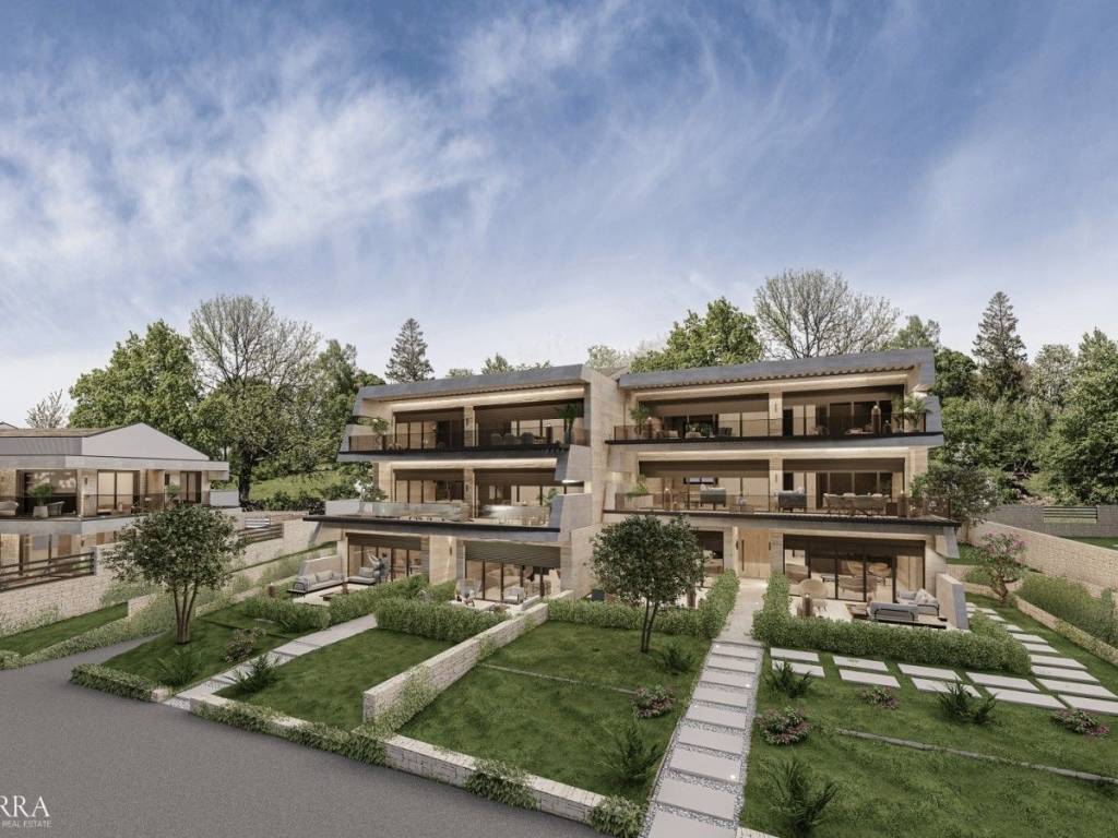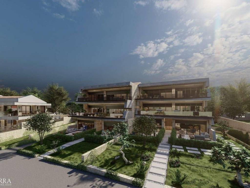 We are selling real estate in a new project in an extremely attractive location in the immediate vicinity of the sea and well-kept beaches.It is a complex with common rooms and a reception,within which 4 smaller residential buildings are being built, each with 4 luxury apartments, two on the ground floor and one apartment each on the 1st and 2nd floors, and 21 villas with shared facilities such as swimming pools, wellness & spa, fitness , children's playground, wine bar and restaurant.Maintenance of all common areas will be planned and organized in the complex, and the complex is secured by 24-hour surveillance.Building D, apartment 2 on the ground floor, consists of 67.76 m2 with an outdoor terrace.The apartment consists of an entrance hall, two bedrooms, a bathroom and an open space with a living room, dining room and kitchen.The apartment has 1 parking space in the property.