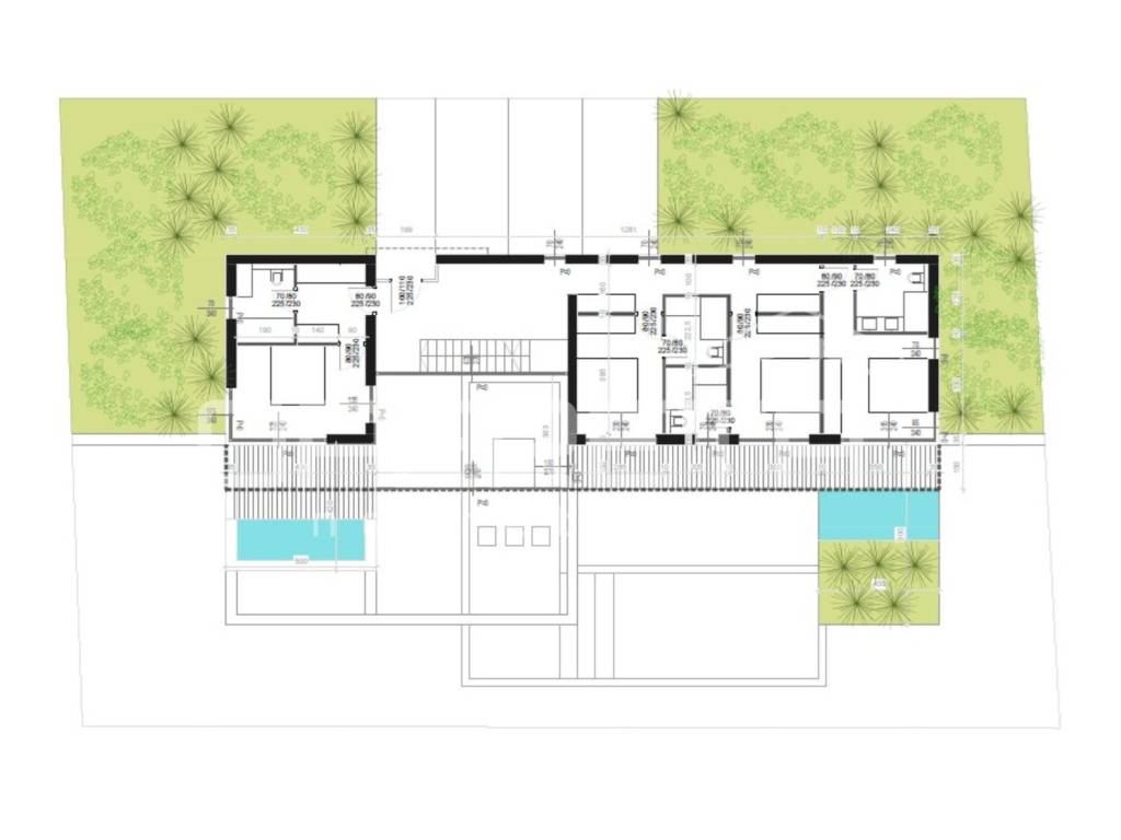 Za parcelu je izrađeno idejno rješenje moderne vile na dvije etaže s bazenom i prostranim vanjskim površinama. Sva potrebna komunalna infrastruktura nalazi se u neposrednoj blizini zemljišta, što omogućuje jednostavnu realizaciju projekta.