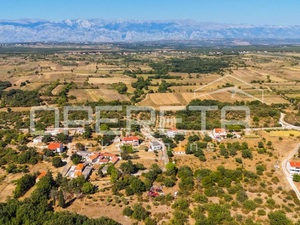 Na mirnoj lokaciji u naselju Poličnik, s pogledom na planinski lanac Velebita, prodaje se građevinsko zemljište površine 482 m s pravomoćnom građevinskom dozvolom za gradnju moderne obiteljske kuće s bazenom.