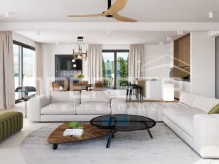 Floor-to-ceiling windows connect the interior with the exterior, opening views and access to a terrace that offers additional space for relaxation or entertaining.