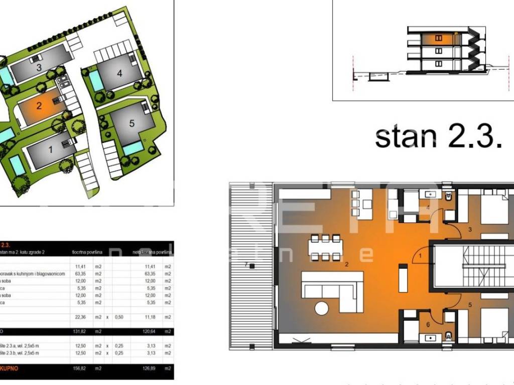 This apartment 2.3 is located on the third level, i.e., the second floor of Villa 2.