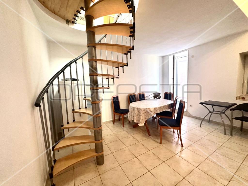 Apartment on the second floor consisting of a kitchen with a dining room, two bedrooms, one of which has access to the terrace, a bathroom and a toilet. Also, this apartment has a staircase that connects the upper and lower floors.