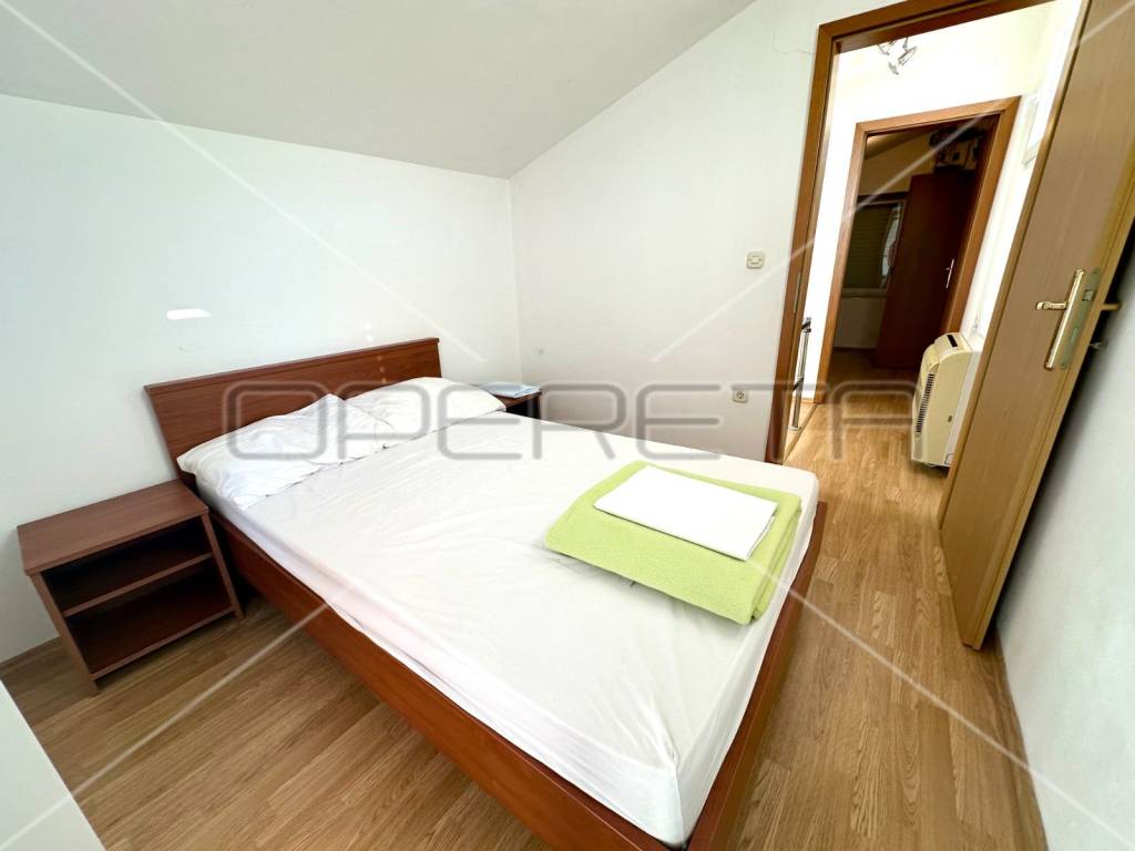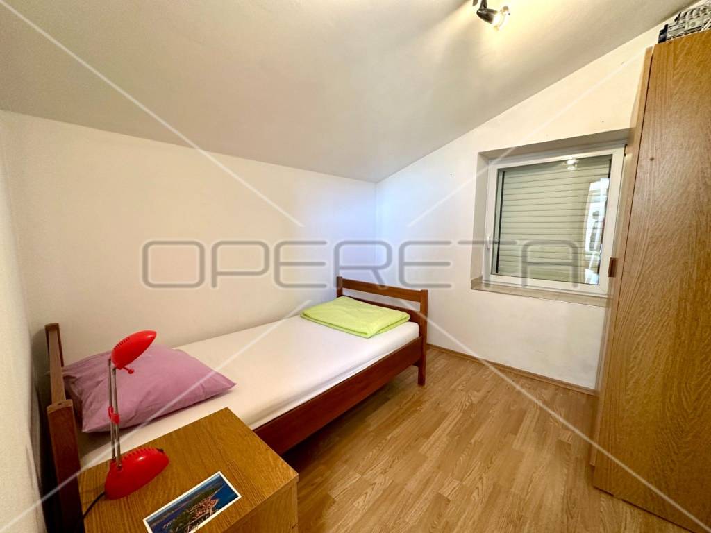 The second apartment in the house consists of a spacious terrace with a view of the sea, a kitchen with a dining room, two bedrooms, a bathroom, a laundry room and a smaller terrace and balcony.