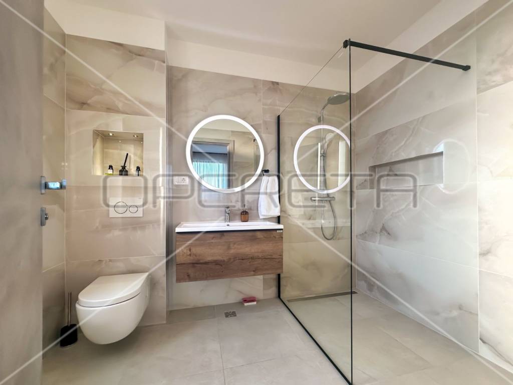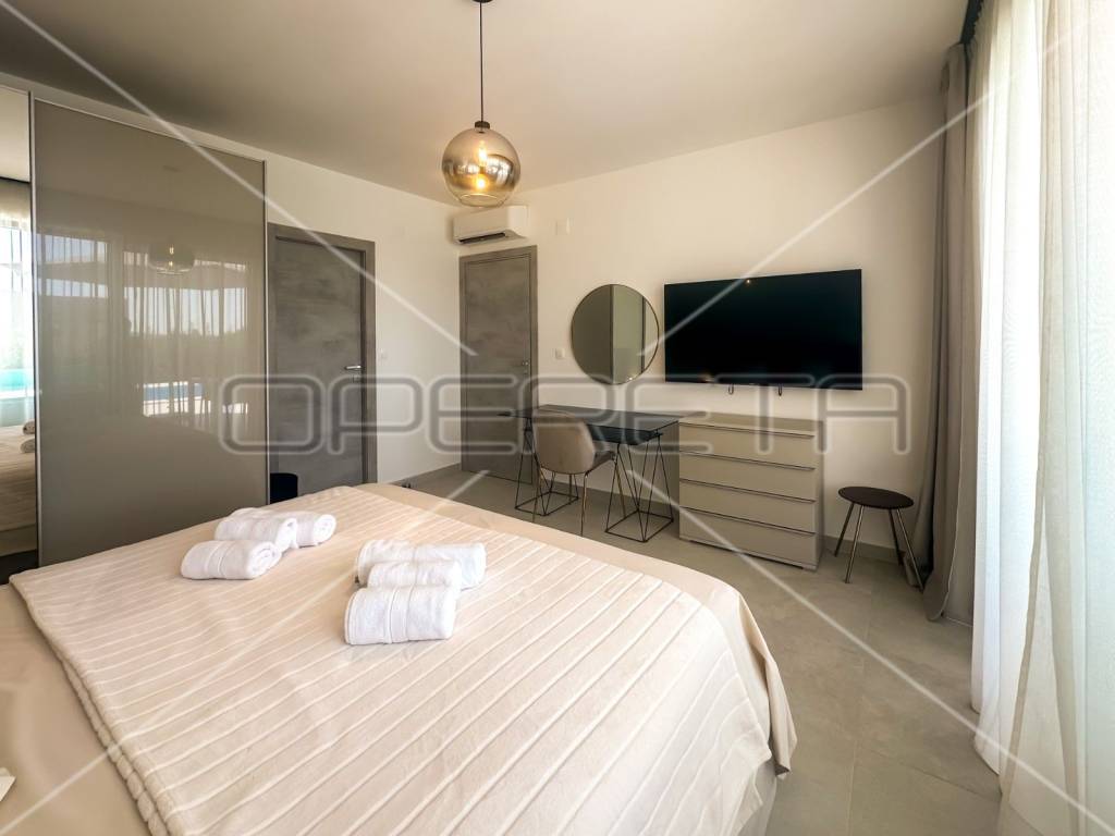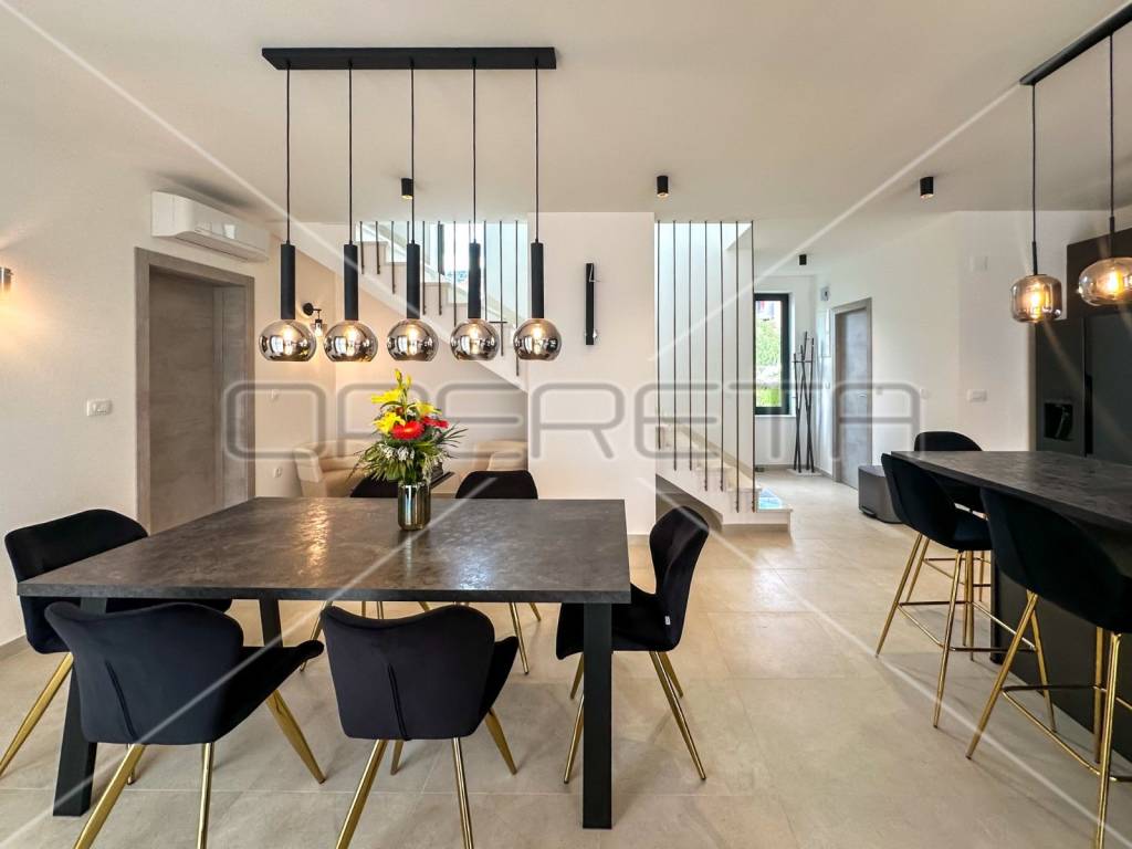 The villa is newly built, with top-quality construction and special attention to detail. It boasts a heated pool and premium designer interior furnishings. Built on a plot with a total area of 938 m, the villa spans two floors with a total usable area of 257 m. There is also the possibility of constructing an additional building with a total area of 50 m on the property.