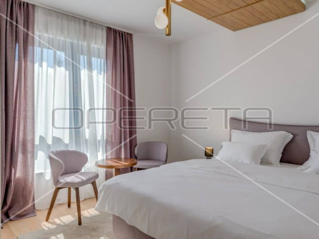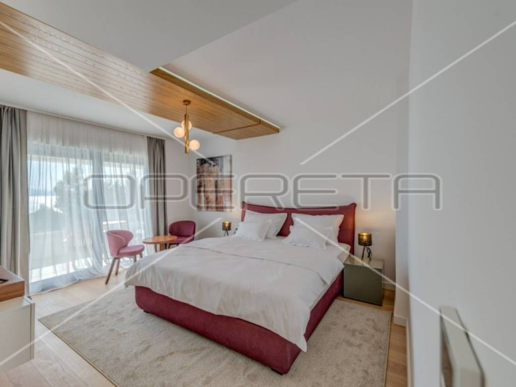 It offers luxury and comfort in the true sense of the words with a pool, indoor pool, sauna, jacuzzi, and gym with an open view of the sea, along with the scent of pine forest and the sea.