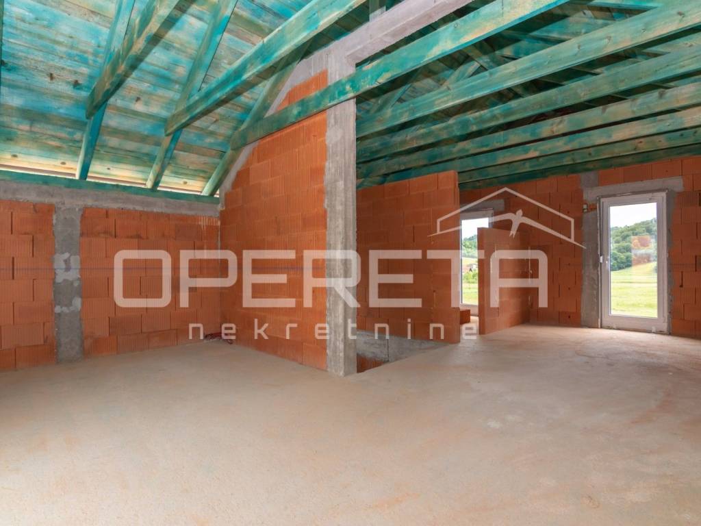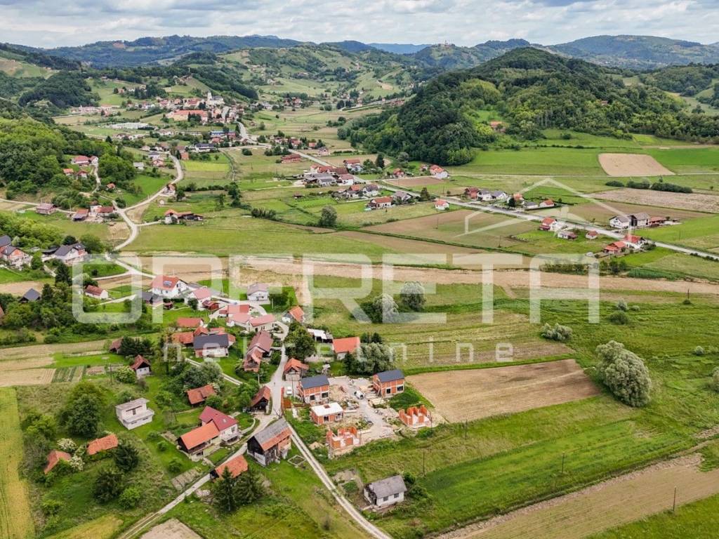 Izuzetno kvalitetna kuća - novogradnja ( 2025. g.) BRP 114 m2 na parceli od 415 m2, funkcionalnog tlocrta, prozračna i puna svjetla, na mirnoj lokaciji s prekrasnim panoramskim pogledom na prirodu i zelenilo, 2 min do centra Desinića i svih važnih sadržaja. Orijentacije istok-zapad, kuća se proteže na dvije etaže: prizemlje se sastoji od "open space" dnevnog boravka / blagovaonice / kuhinje s izlazom na terasu, wc-a, tehničke prostorije i ulaznog prostora. Nutarnjim stubištem povezano je s gornjom etažom na kojoj se nalaze tri spavaće/radne sobe, kupaonica s wc-om i galerija/hodnik. Korišteni vrhunski materijali, kvalitetna keramika i vinil s podnim grijanjem, pvc 3-slojna stolarija, klima. Kuća se nalazi na središtu parcele s blagim nagibom. U dvorištu parking za 3 automobila. Izvrsna makro-lokacija: svega 2 minute vožnje do centra Desinića i svih važnih sadržaja, 20 min do Tuheljskih toplica te termalnog parka Aqualuna u Sloveniji, 7 min do dvorca Veliki Tabor. Izvanredna prilika za život i/ili turistički najam. Preporuka!