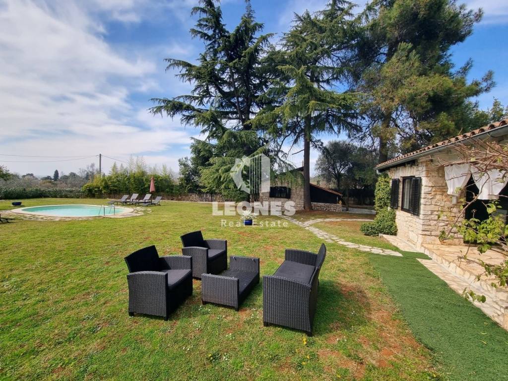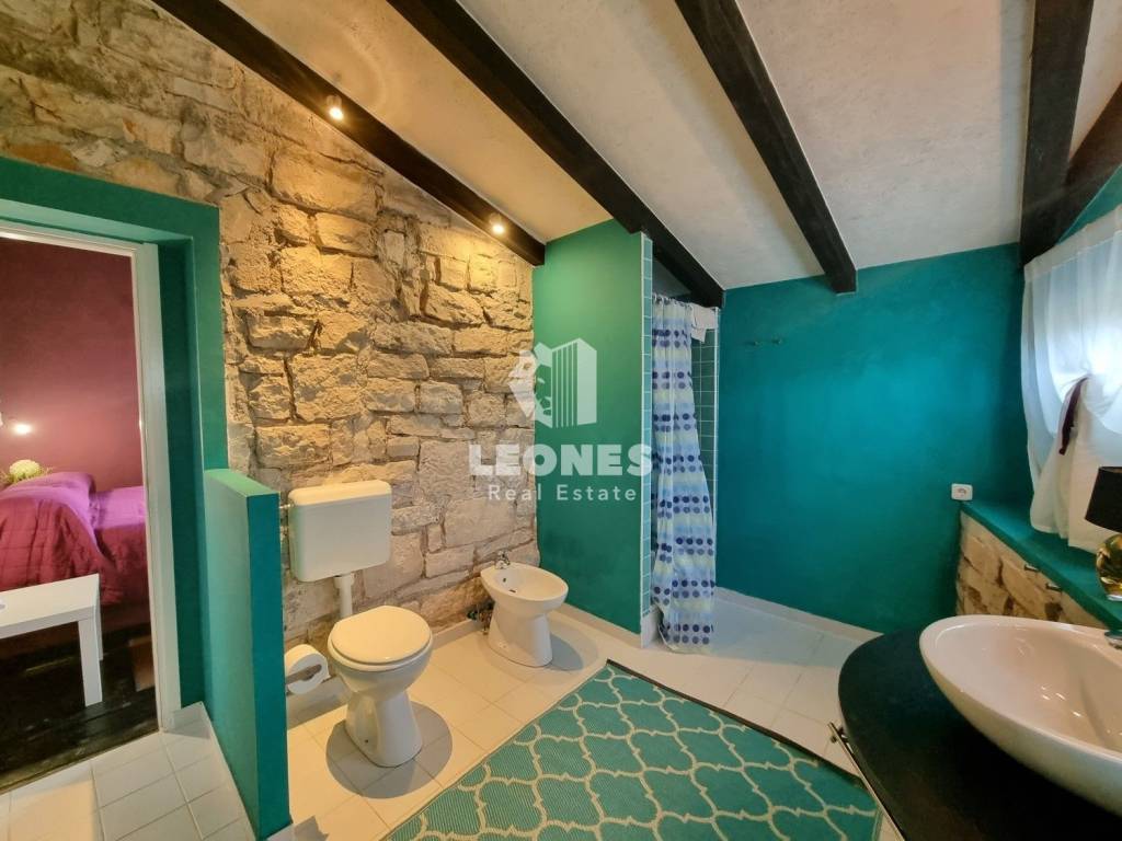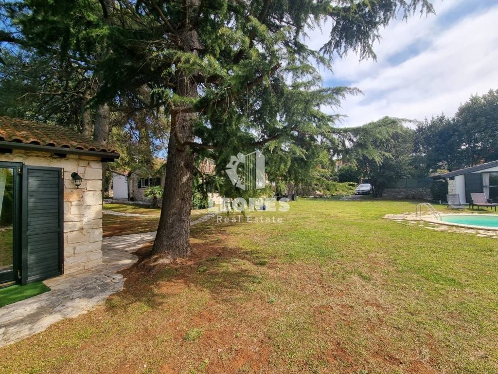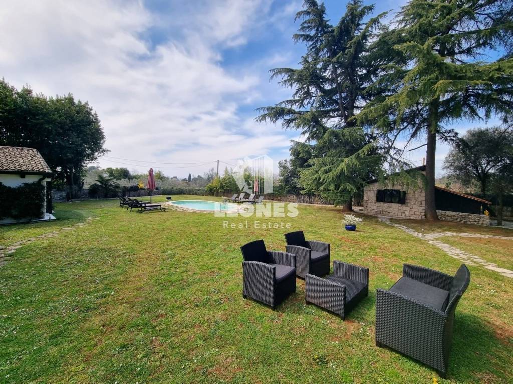 A beautiful stone villa with a pool and a view of the sea in Umag is for sale. The villa is located only 150 m from the sea and the beach. The central villa has an area of 170 m2 and consists of a living room and a dining room between which there is a large fireplace, a kitchen, a bathroom, a toilet and a bedroom. Heating is central with oil. The villa was renovated in 2014 and is being sold fully furnished. In addition to the villa, there are 3 additional buildings in the large garden. Two objects of 30 m2 consist of one bedroom and a bathroom, while the third object of 50 m2 consists of one bedroom with a bathroom, while the second part, which has a separate entrance, has a bedroom and a bathroom that needs to be adapted.