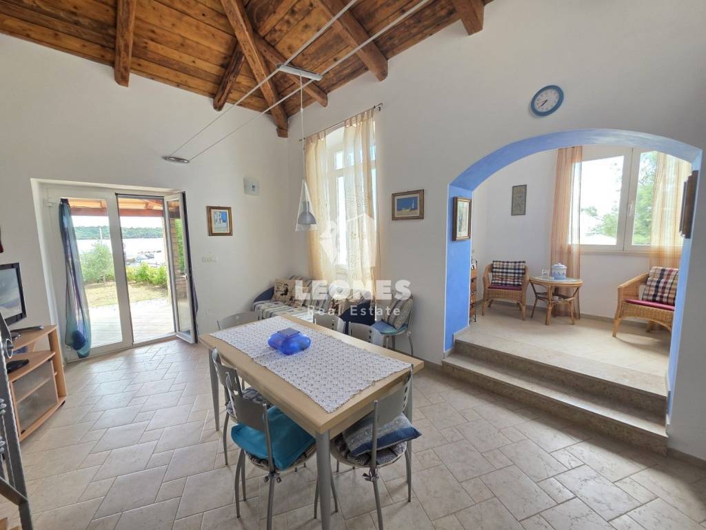 A beautiful stone house in the first row to the sea in Lovrečica, near Umag is for sale. The house was completely renovated about 15 years ago. The net usable area of the house is 142 m2 and it extends over two floors. On the ground floor there is a living room, dining room, bathroom, 2 bedrooms, kitchen and a large terrace with a sea view. In the basement there is also a storage room which is practical for storing things. On the first floor there is another bedroom and a bathroom. The plot has an area of 297 m2. The house has 2 parking spaces.
