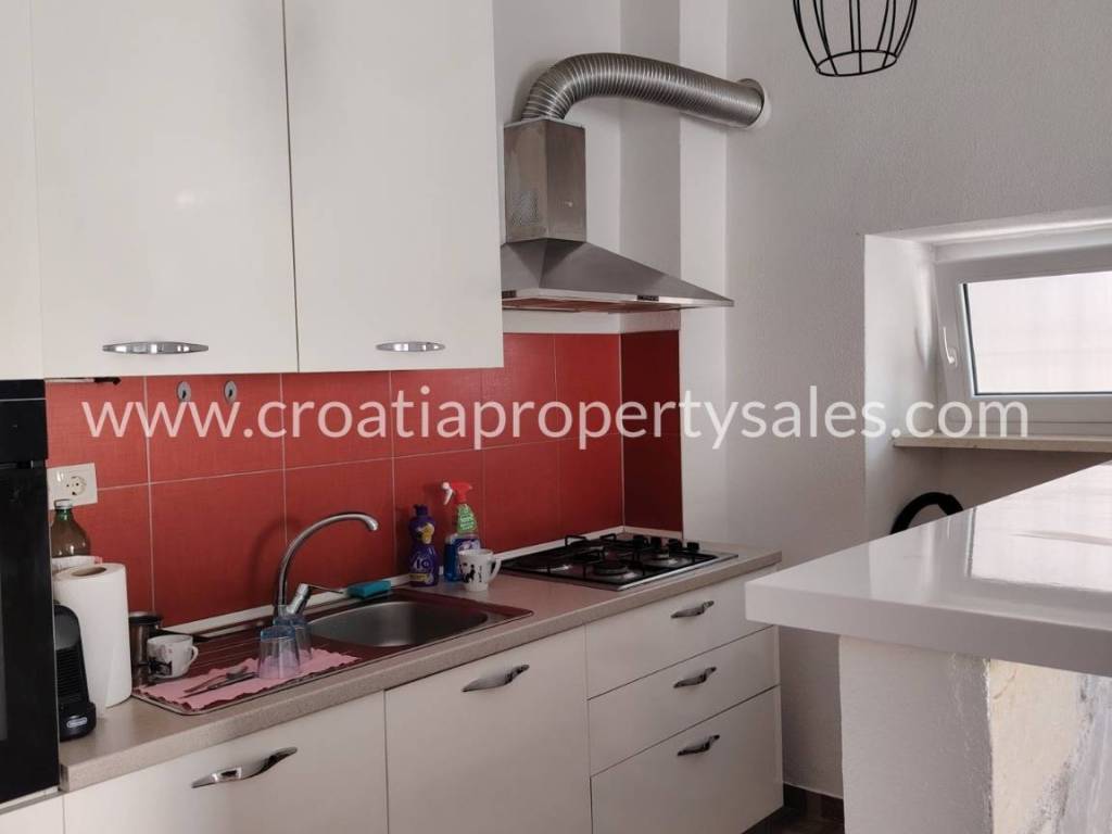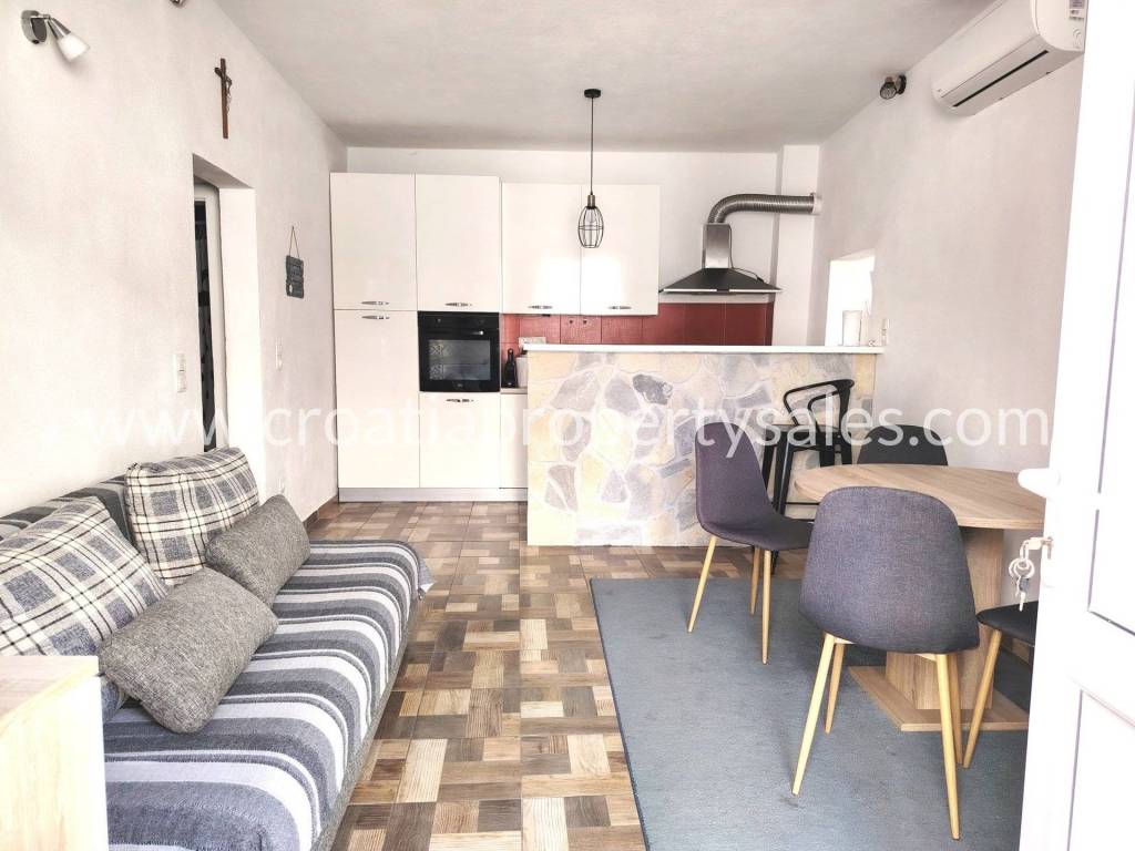 A terraced house in the center of a small town just 100 m from the sea.