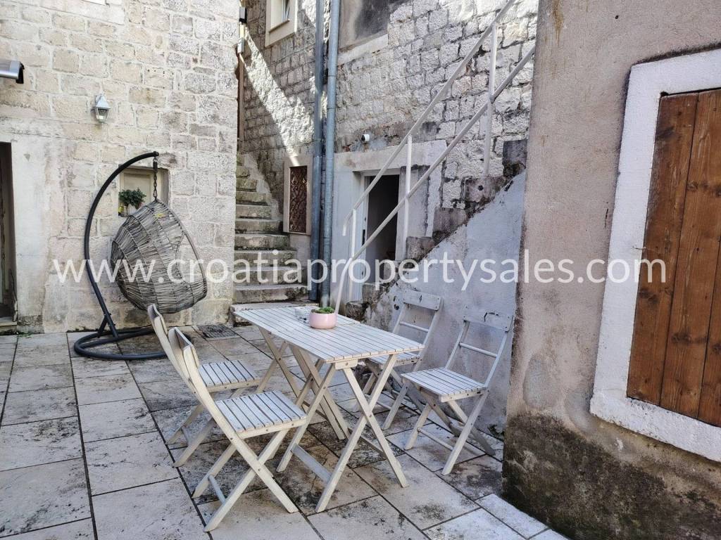 In front of the house there is a courtyard with a seating area. There is also a barbecue and an outdoor well.The courtyard is shared with neighboring houses.