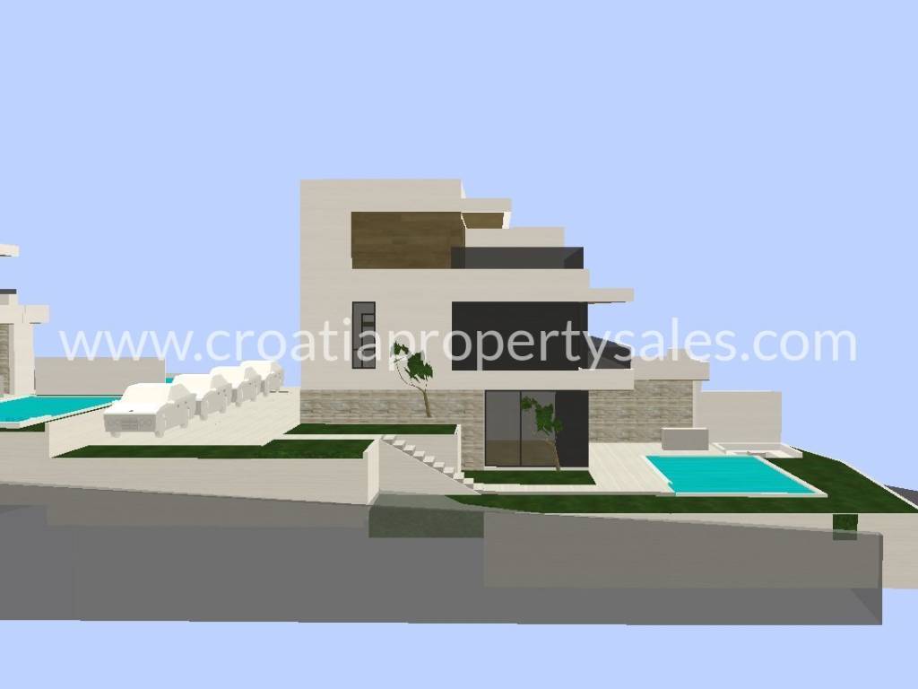 New construction of modern, luxurious two-story villas with pool and sea view.
