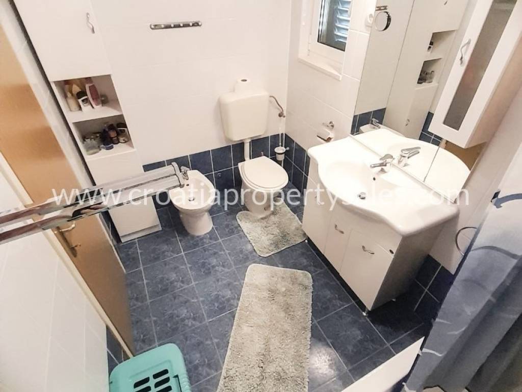 Unique house located on a peaceful island near Trogir, in the first row to the sea. This property is perfect for those seeking a tranquil retreat and an escape from the hustle and bustle of city life, surrounded by unspoiled nature and the beauty of the sea. The house spans three floors and consists of two apartments. The first two floors form a duplex apartment with two spacious bedrooms, ideal for a family. The top floor features an apartment in a shell stage, which the new owner can customize to their own preferences and needs. Each floor has a separate entrance, allowing the apartments to function as independent living units, offering flexibility for future owners whether as a private oasis or as a rental investment. The island is perfect for nature lovers and those seeking peace and privacy, while still being close to all the amenities of Trogir. If you're looking for a property that combines tranquility and comfort, this is the right choice for you.
