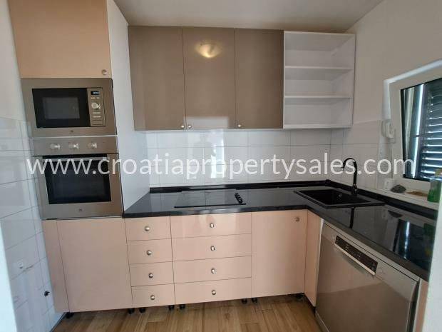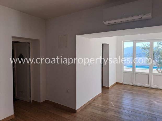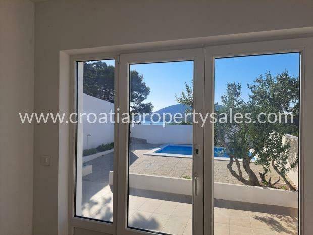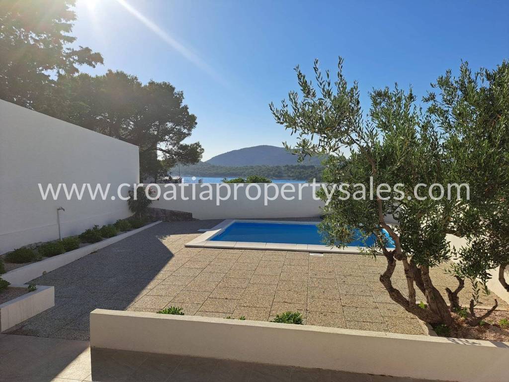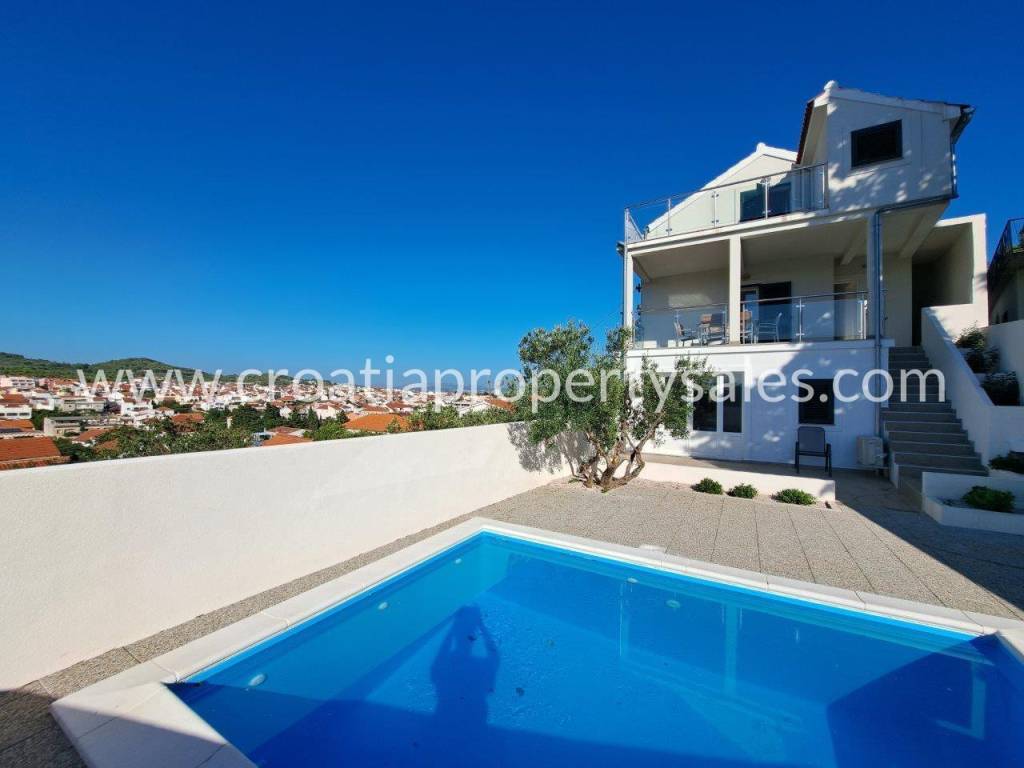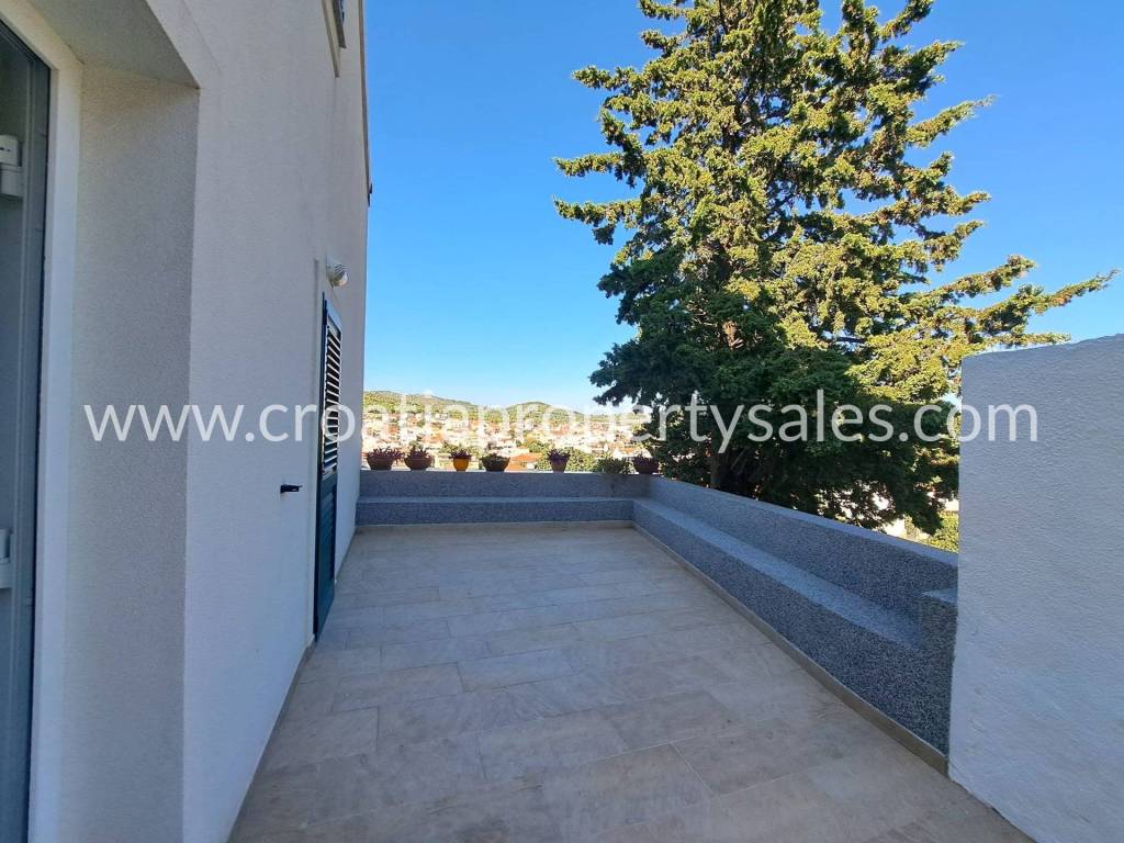 Villa with swimming pool and panoramic sea views for sale in a village not far from Sibenik. The villa has a sea view on both sides from four large terraces; breathtaking panoramic views of the village and marina on the one side and the sea on the other. The property has the advantage of being tucked away on this small hill, but within a few minutes walk of the marina and lively old town, with its delightful cafes and restaurants. It takes only five minutes to walk to the picturesque coastal promenade and lovely beaches.