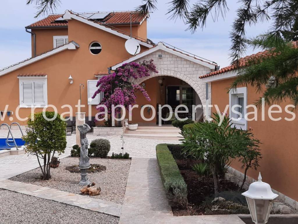 Beautiful family house in a quiet neighborhood of Vodice, fully furnished with a swimming pool, garage and a large garden.