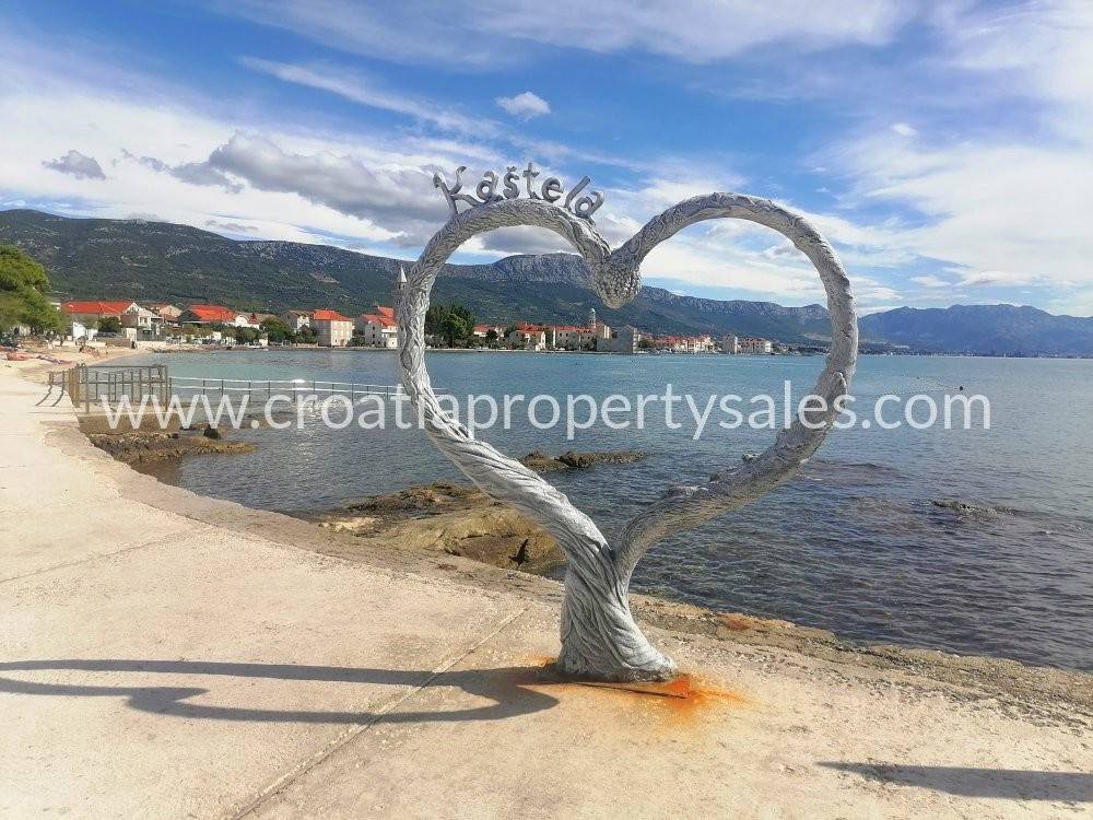 We are agents for this attractive house designed over three floors and situated in the centre of a small tourist town near Split. On the ground floor of the house there is a kitchen with a dining room, a separate living room and a bathroom with a toilet. Upstairs there are two bedrooms and a bathroom with a toilet. On the second floor is another bedroom and terrace. The house is located only 50 m from the sea and the beach. Access by car is possible with street parking nearby, but shops, cafes, bars and other amenities nearby are all in walking distance.