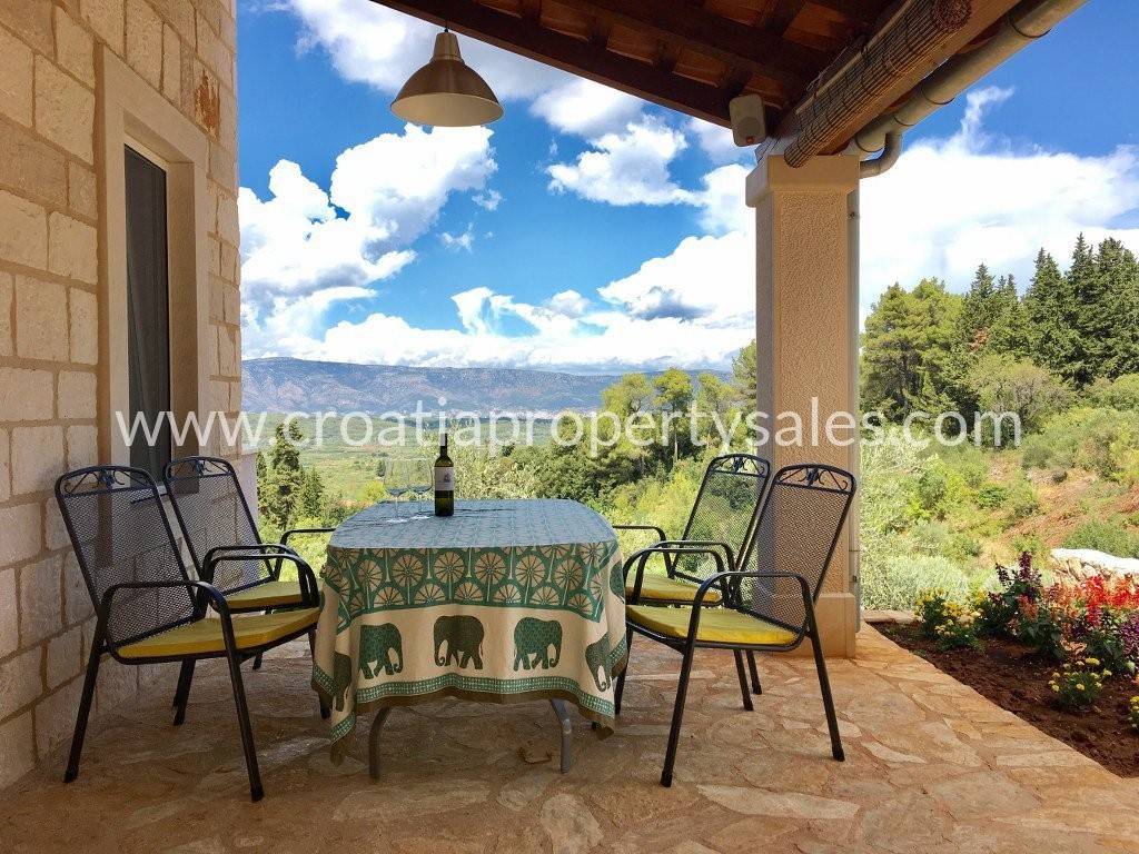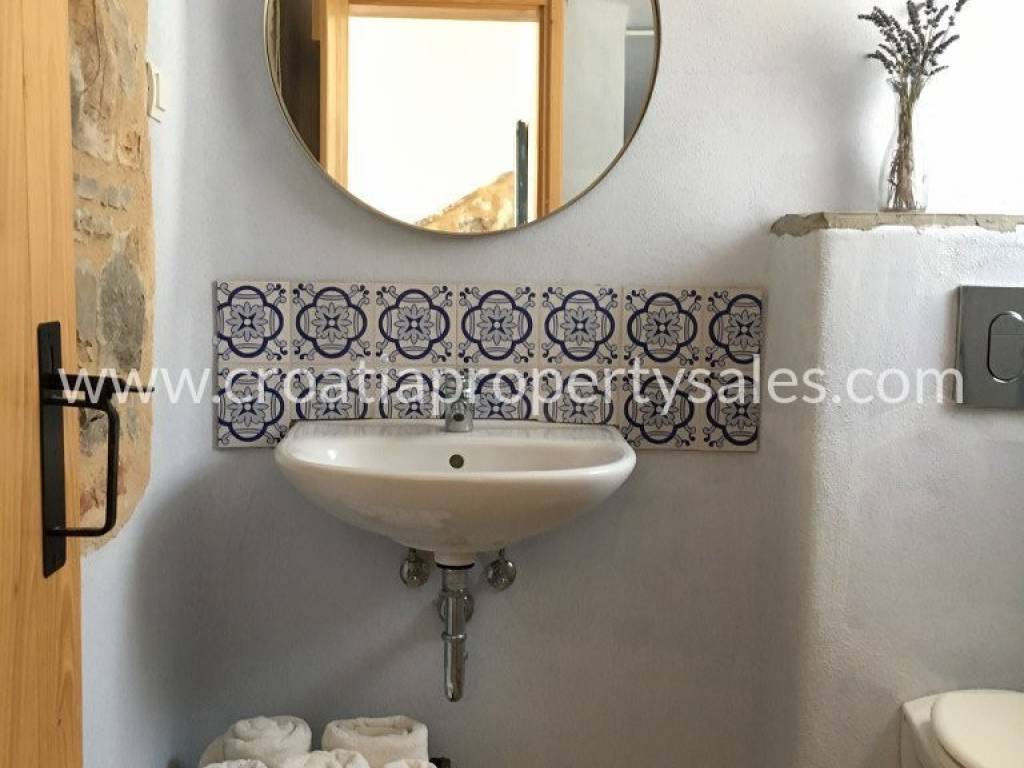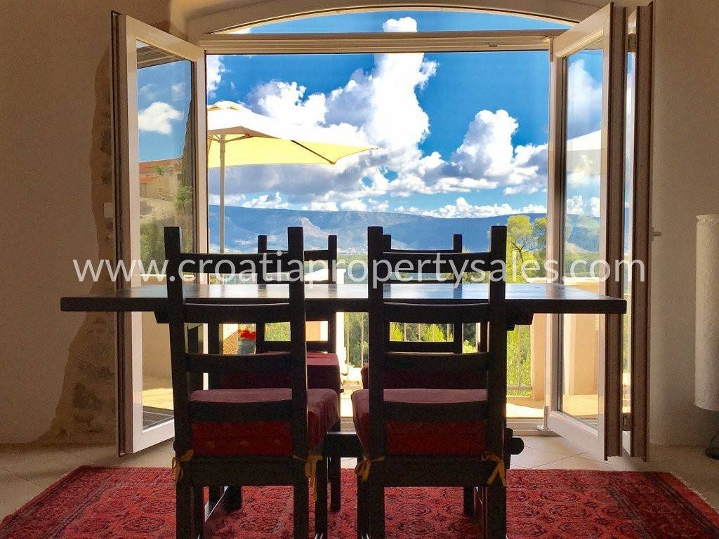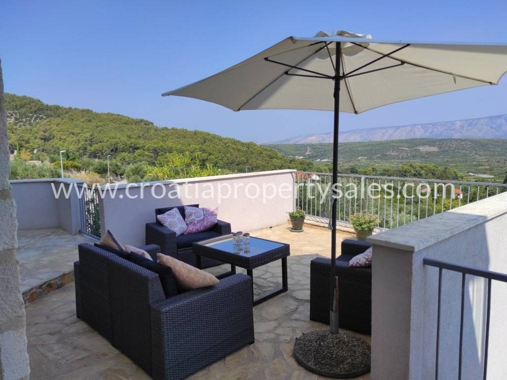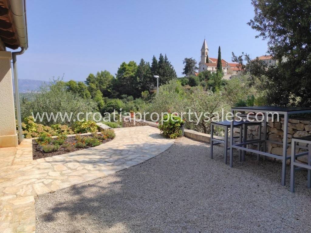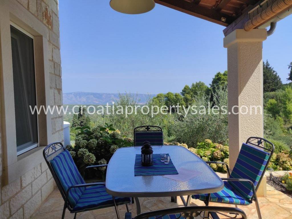 Detached family house/holiday house, with sea view. The house consists of two floors. The ground floor is an open space with a living room, dining room, kitchen and toilet. A lot of light comes through the windows and balcony doors and illuminates the room. Internal stairs lead to the first floor where there are three bedrooms and a bathroom with shower and toilet. The balcony on both floors offers a beautiful view of the neighboring island and the village. A large outdoor summer kitchen ideal for pleasant barbecue evenings. The house and garden are very well maintained and offer privacy. Garage and parking space available.