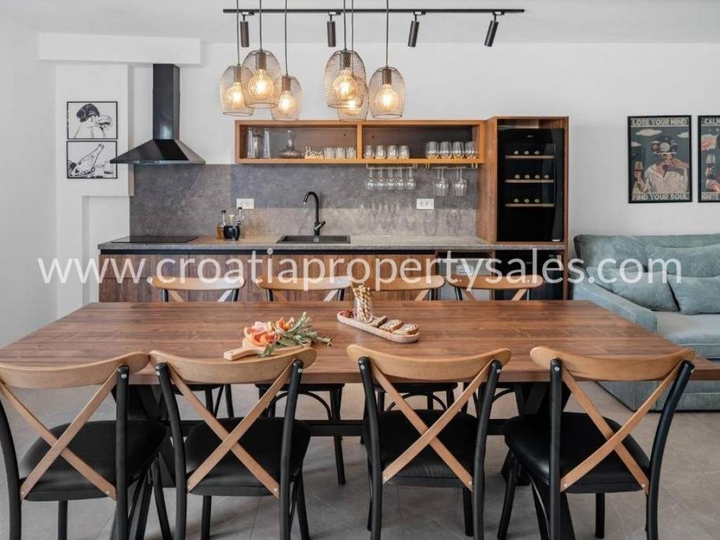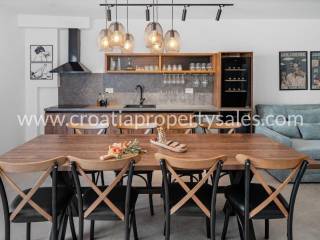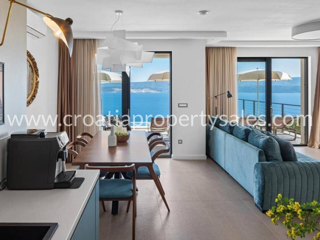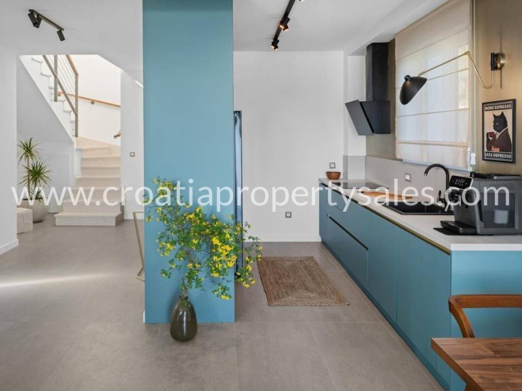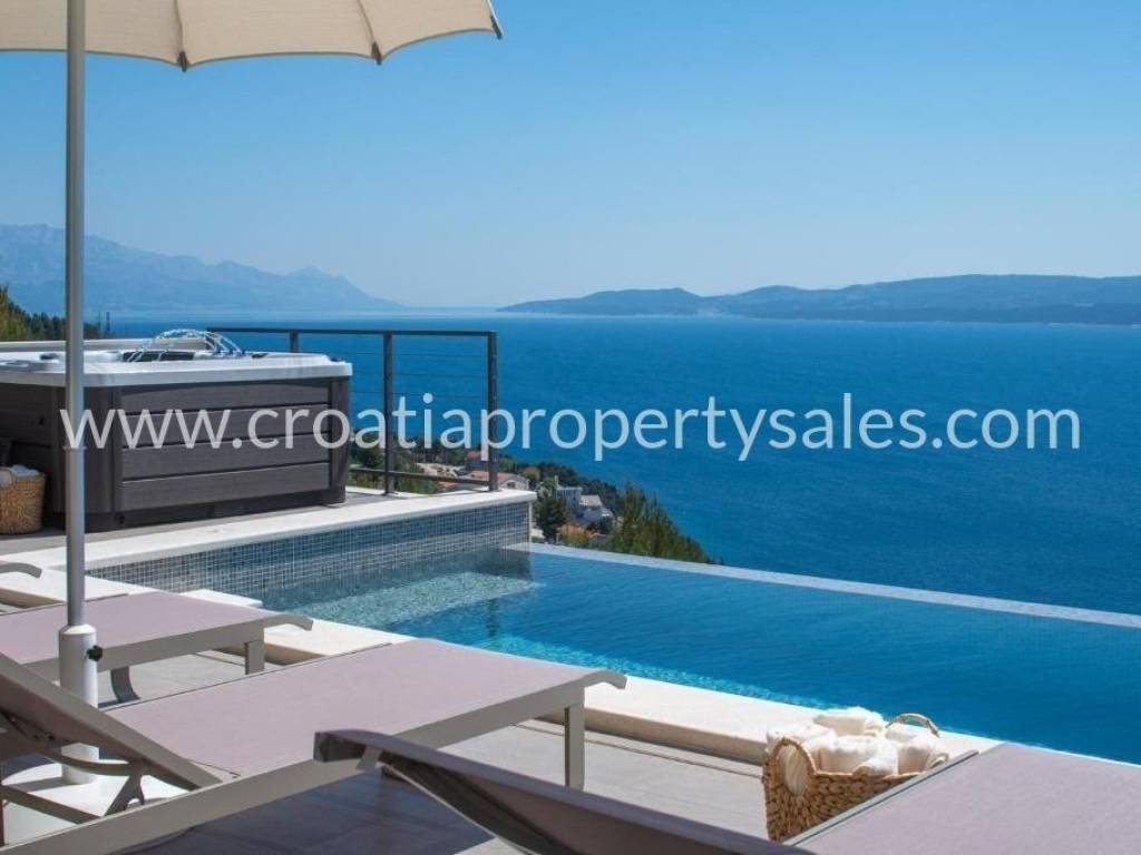 A wonderful, newly built villa with an open panoramic view that cannot be closed. We offer for sale a modern villa located in a small, quiet place on the Omis Riviera. The villa consists of a ground floor and 2 floors. On the ground floor of the villa there is an unfinished open space that can be used as a tavern or can be arranged as a space for playing and socializing. The ground floor also has an outdoor terrace. External stairs lead to the first floor of the villa where there is a bathroom, laundry room, kitchen, dining room and an open concept living room facing the southern terrace where there is a sundeck and swimming pool, and an outdoor kitchen. Stone-paved stairs lead to the second floor, where there are 3 bedrooms and two bathrooms, one of which is attached to the master bedroom. The house is sold without furniture, which allows the future owner to adapt the furniture to his wishes and taste. Four outdoor parking spaces are located on the north side of the villa, and garages can also be purchased upon request and upon agreement with the owner.