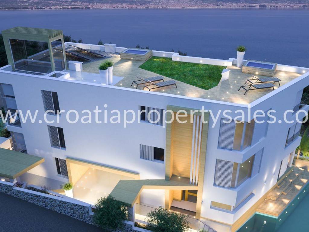 On the ground floor is a spa room, with a sauna and an indoor swimming pool. The 1st floor consists of a private apartment, with 2 bedrooms and bathrooms, kitchen and living room area. The 2nd floor is same as the 1st floor, a private apartment, but this floor will have direct access to the roof terrace, where owners will have a 360 view.