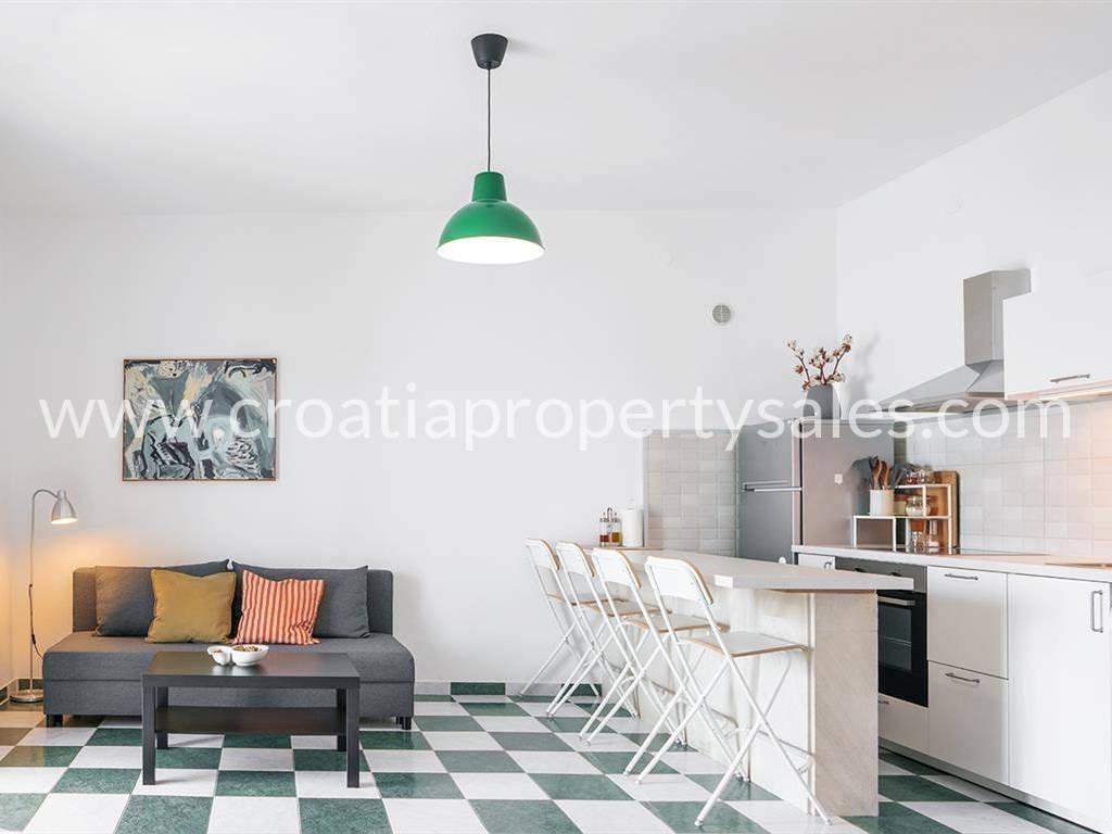 The larger apartment of 60m2 consists of two bedrooms, bathroom, kitchen, dining room and living room.