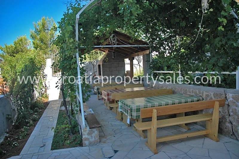 The house has a garden on two levels and a bbq grill (indoor) and a beautiful covered terrace with benches.