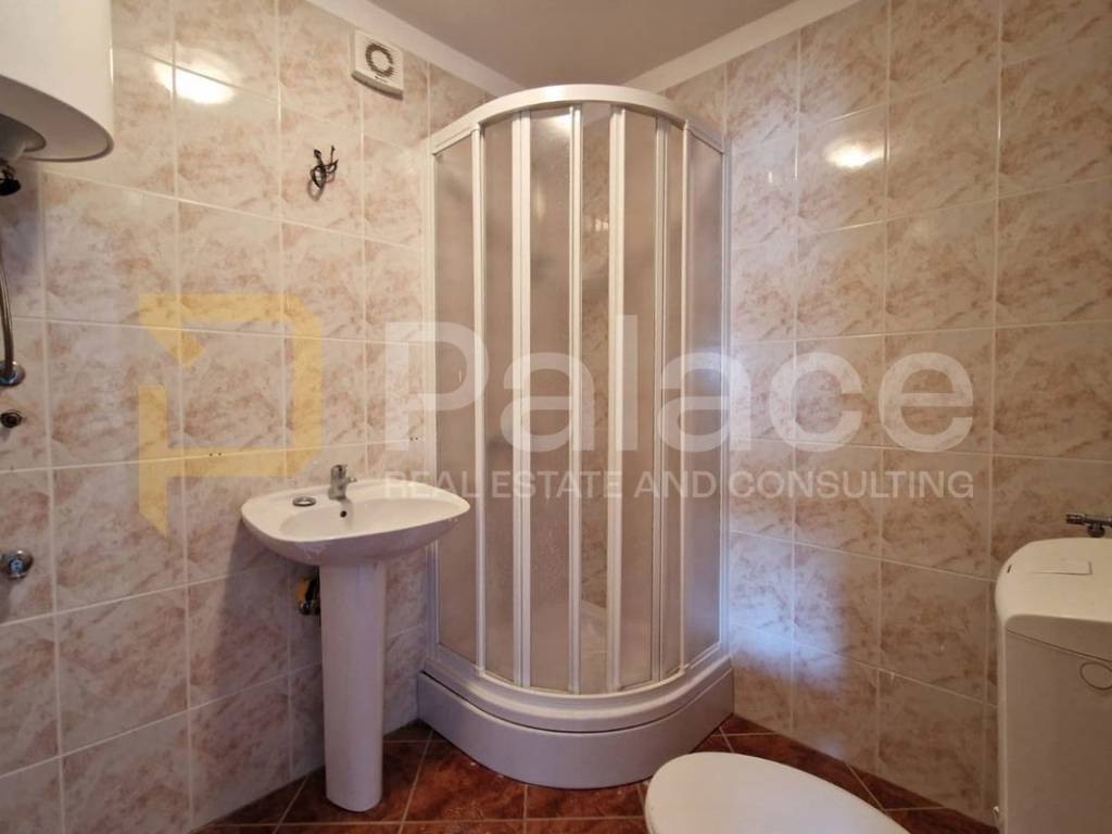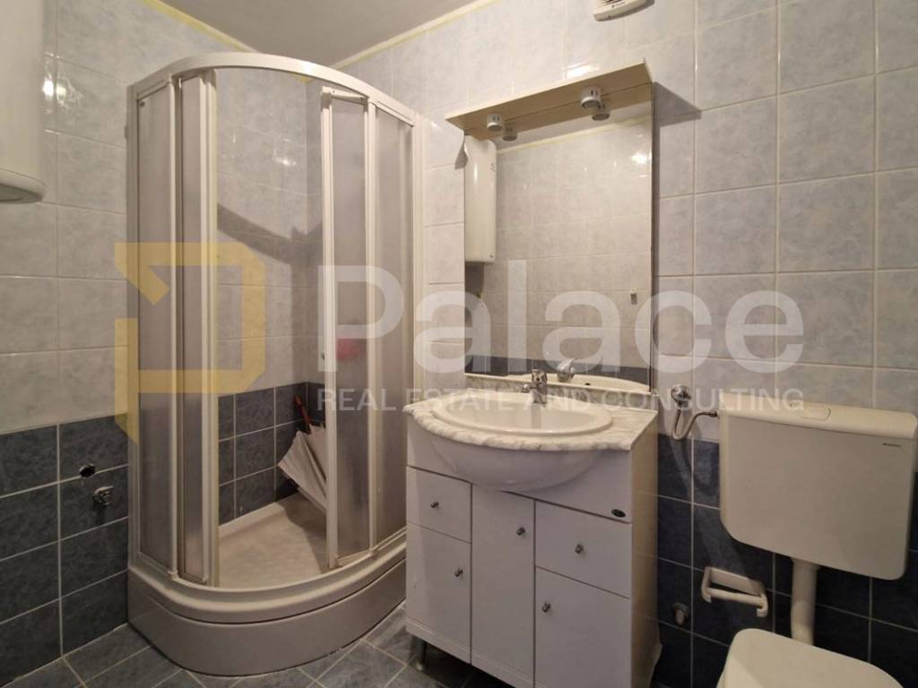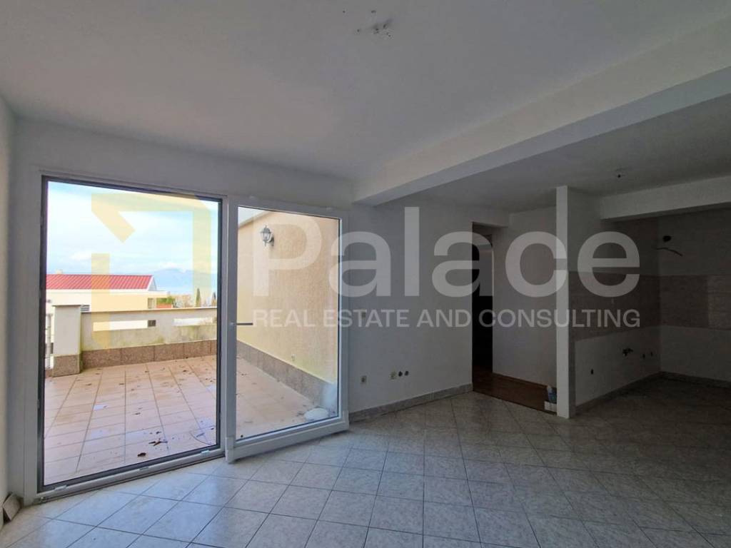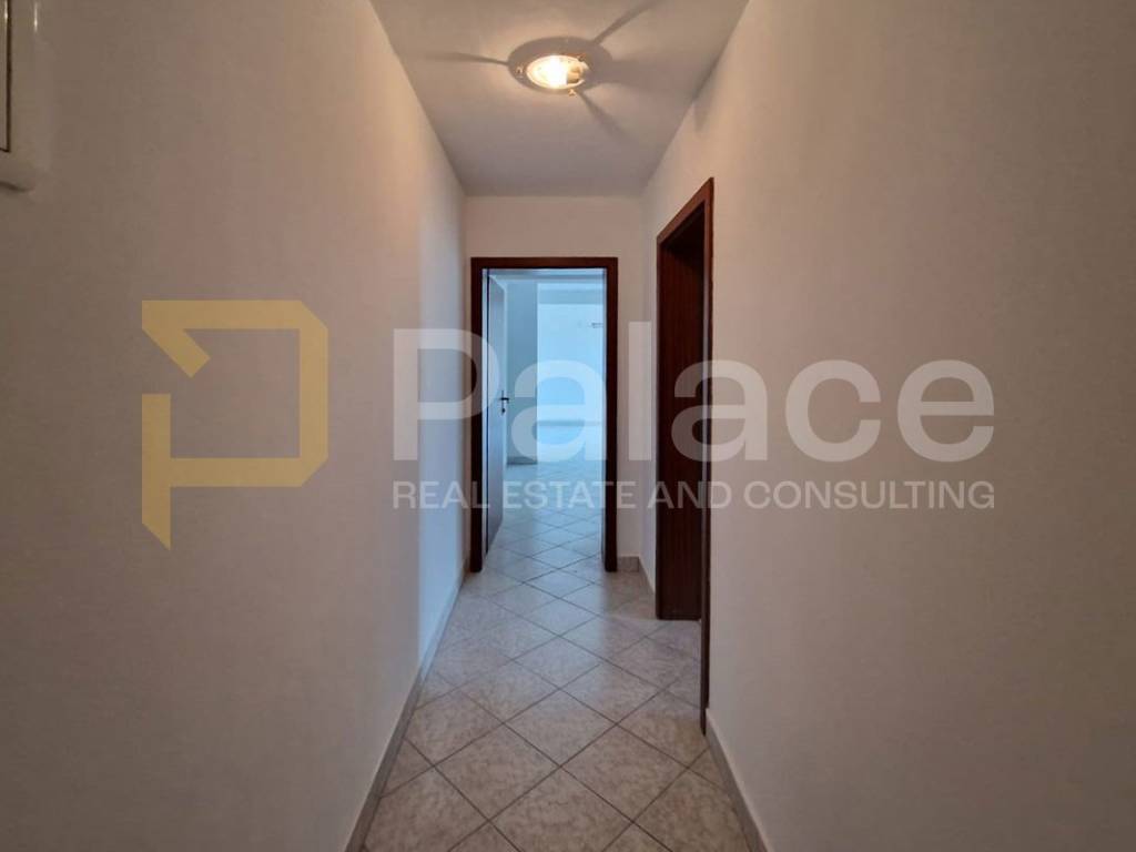 The total area of the apartment is 78.7 m and consists of a hallway, bathroom, toilet, three bedrooms, living room, kitchen with dining area, storage room, and terrace. In essence, it is divided into two separate one-bedroom residential units, each with its own living room, kitchen, and bathroom. One unit has a French balcony with partial sea view, while the other has a terrace, also with partial sea view.
