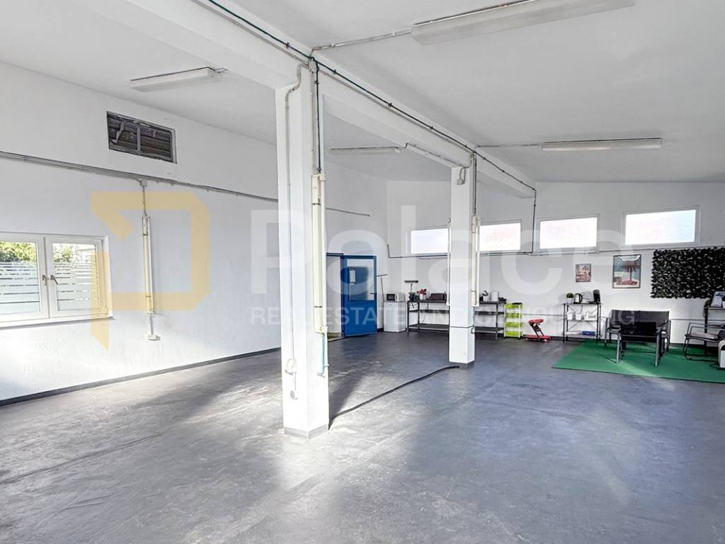 Garaža je jako prostrana, prozračna, uredno održavana, dodatno u sklopu nje se nalazi manji skladišni ili uredski prostor kao i sanitarni čvor. Zgrada ima Uporabnu dozvolu, trofaznu struju snage 17 kw što joj daje širok spektar mogućnosti za razne djelatnosti. Ispred garaže je popločano i ograđeno dvorište koje također povećava potencijal kompletnog prostora.