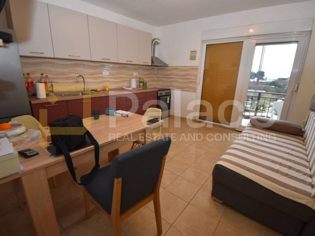 The apartment is located on the first floor of the house (condominium), and consists of a hallway, kitchen with dining area and living room, two bedrooms, and a bathroom, with a total area of 50.20 m2, as well as a terrace of 23.00 m2 and a balcony of 9.50 m2, making a total area of 82.70 m2.