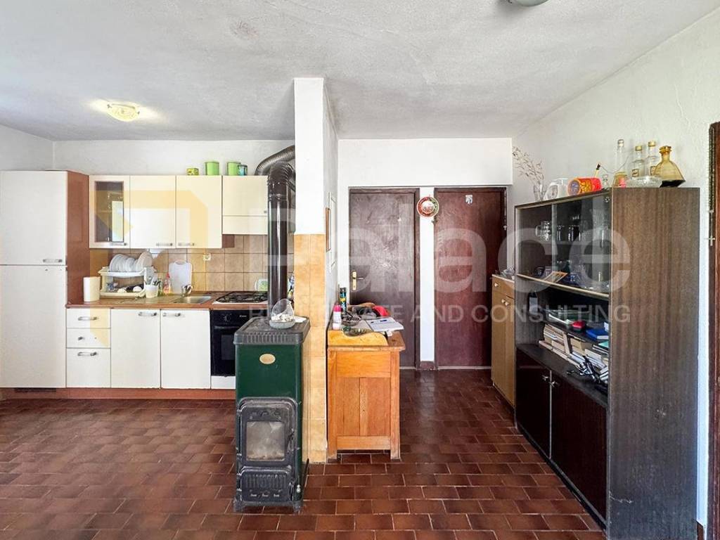 The house consists of three rooms, a kitchen, and a dining room on the upper floor, while on the ground floor there are storage rooms, a garage, and a water cistern.