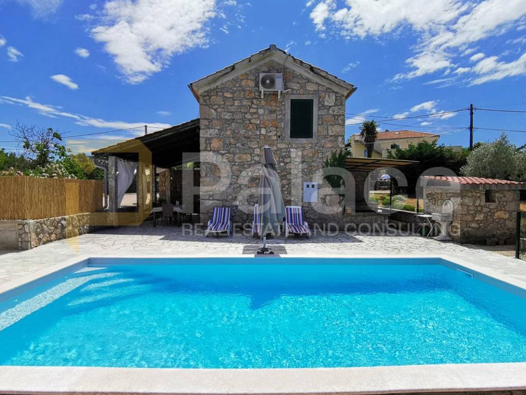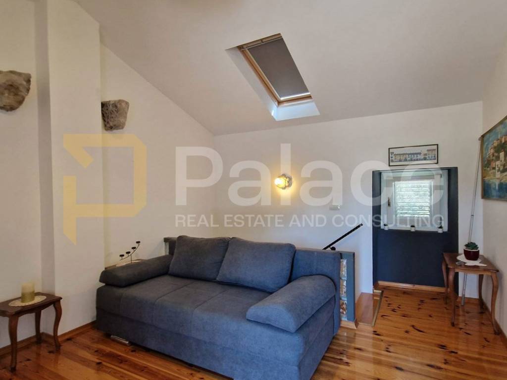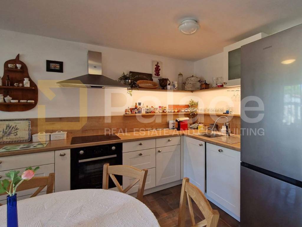 The landscaped garden of 744 m conceals numerous Mediterranean plants, a sunbathing area, and a 35 m pool, perfect for summer relaxation. The yard also includes a practical outdoor storage room and an external toilet. Space for up to eight cars is provided, which is a rarity and a great advantage, especially during the tourist season. The distance to the nearest store is only 200 meters, contributing to everyday convenience.