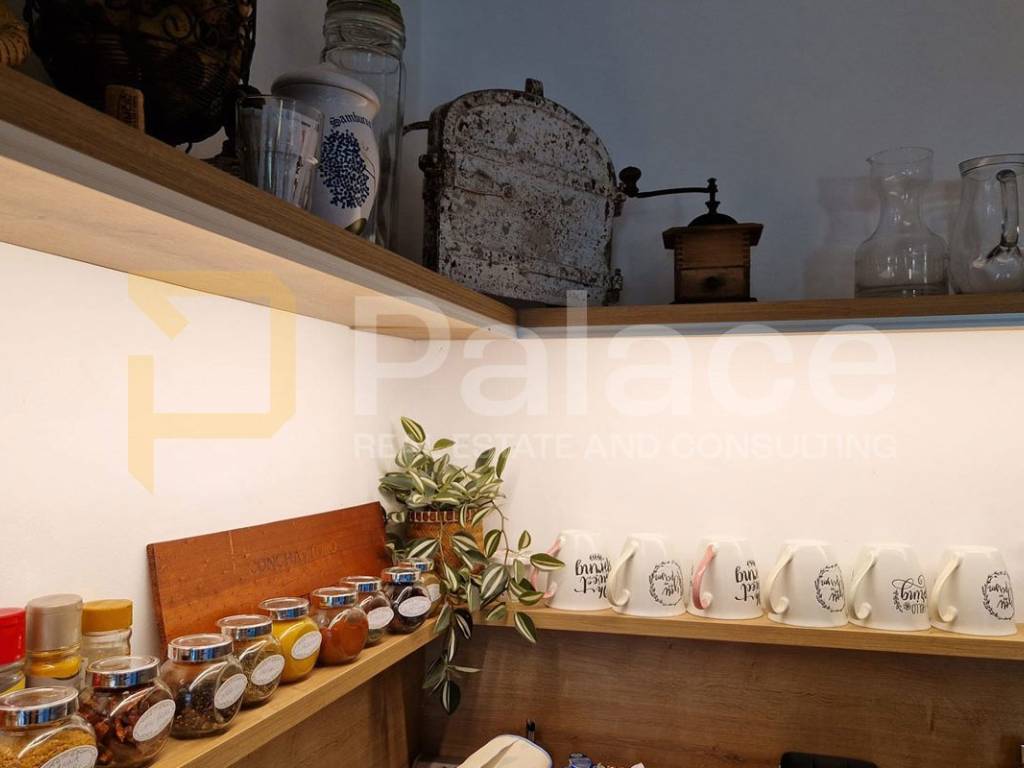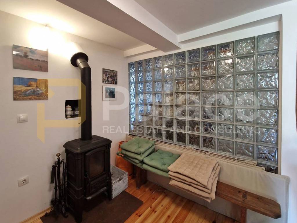 The house is spread over two floors with a total area of 104 m, situated on a spacious plot of 913 m. The ground floor features an open living area with a dining room and a brand new kitchen, while internal stairs lead to the first floor where two bedrooms, a bathroom, and a hallway with an additional bed are located. Special attention has been given to preserving the original details combined with new, high-quality furniture, giving the space an authentic character and a feeling of warmth.