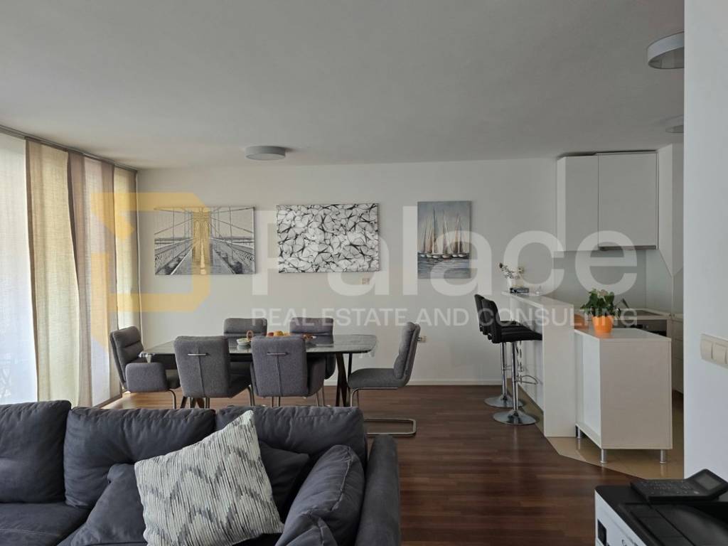 It is located on the 4th floor of a newer building in Kman, just a few minutes away from the center of Split.