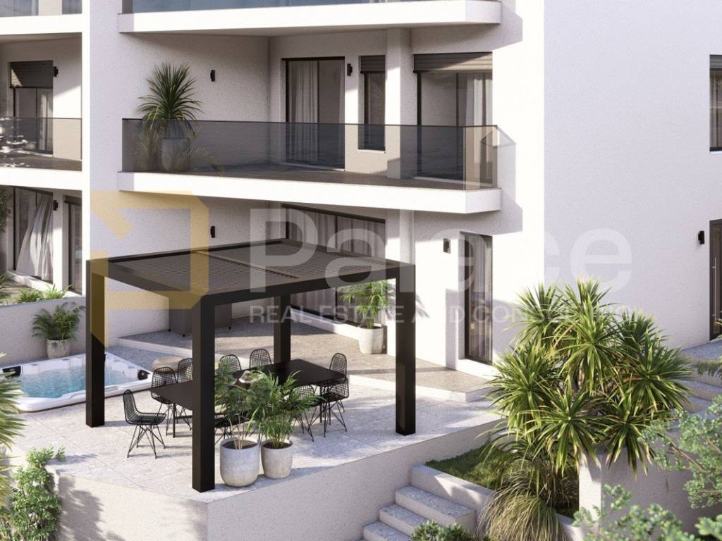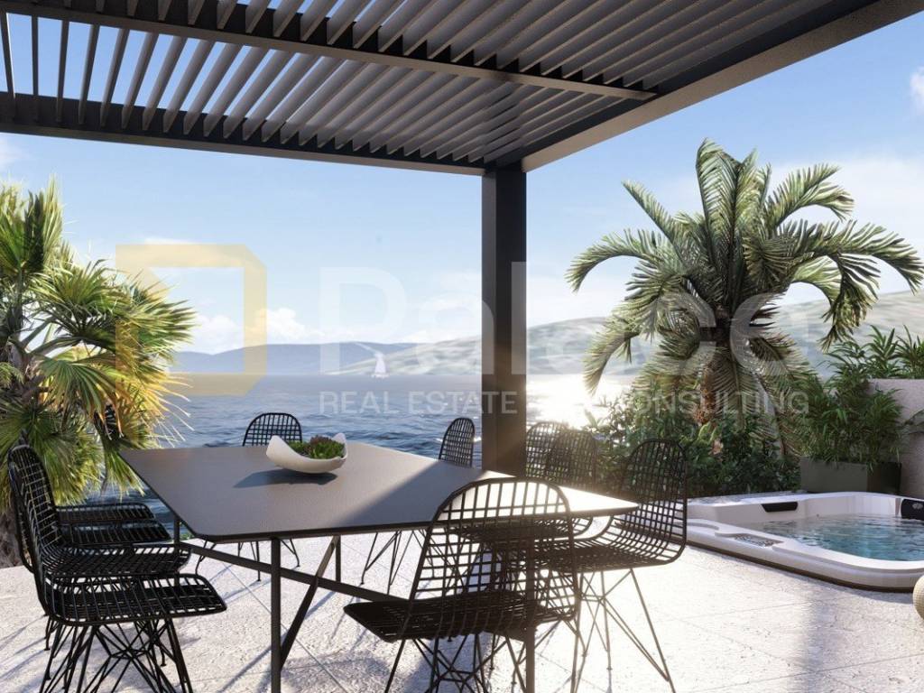 Luxury penthouse with spacious terrace and elegant layout Vranjica, 2nd floorLocated in an exceptional location in Vranjica, near Trogir, this top-class penthouse occupies the entire second floor of a small residential building. This property exudes elegance, quality, and comfort, perfect for those seeking peace, privacy, and a high standard of living.