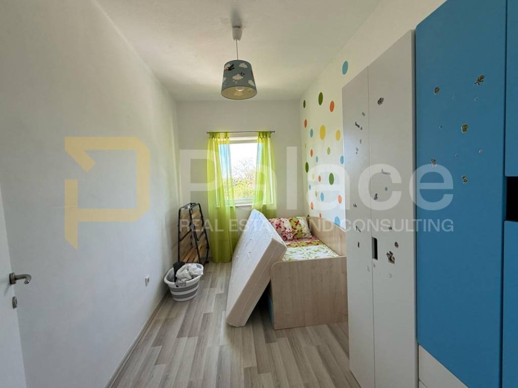 This modern and bright apartment with a surface area of 79 m is located on the first floor of a building in the peaceful neighborhood of Galižana, near Pula. The apartment consists of two spacious rooms, a comfortable living room with plenty of natural light, and a modern kitchen. The balcony, offering views of the tranquil surroundings, is perfect for enjoying your morning coffee. The apartment was built in 2009 and includes a garage and an additional parking space in front of the garage, ensuring maximum comfort and convenience.
