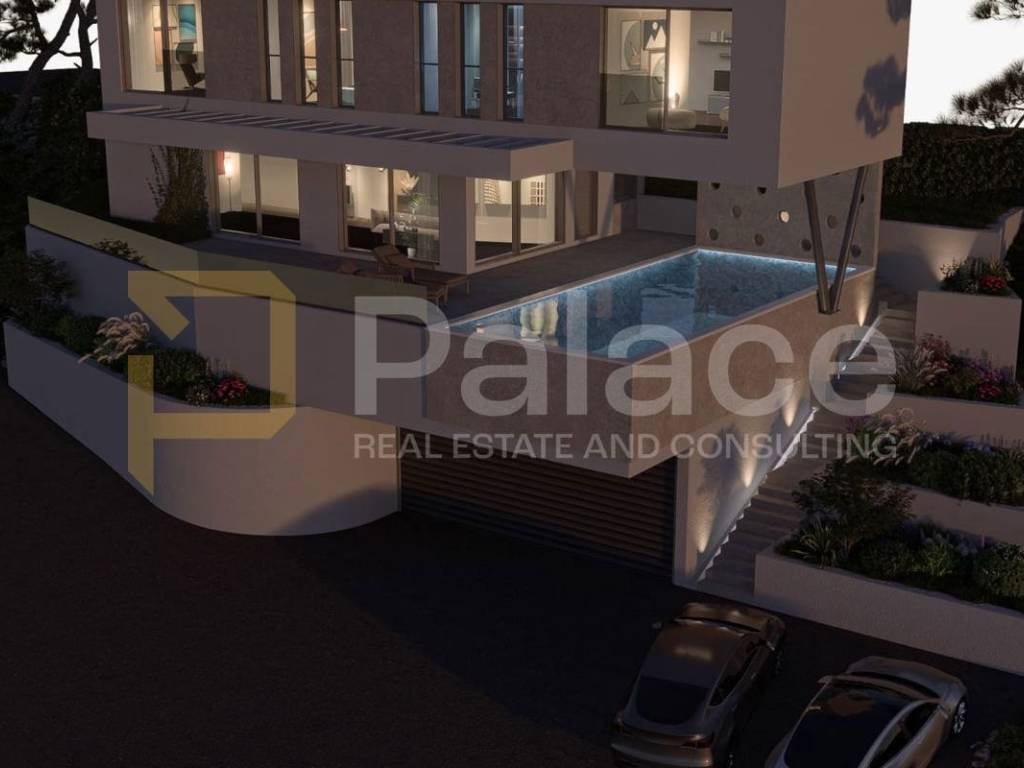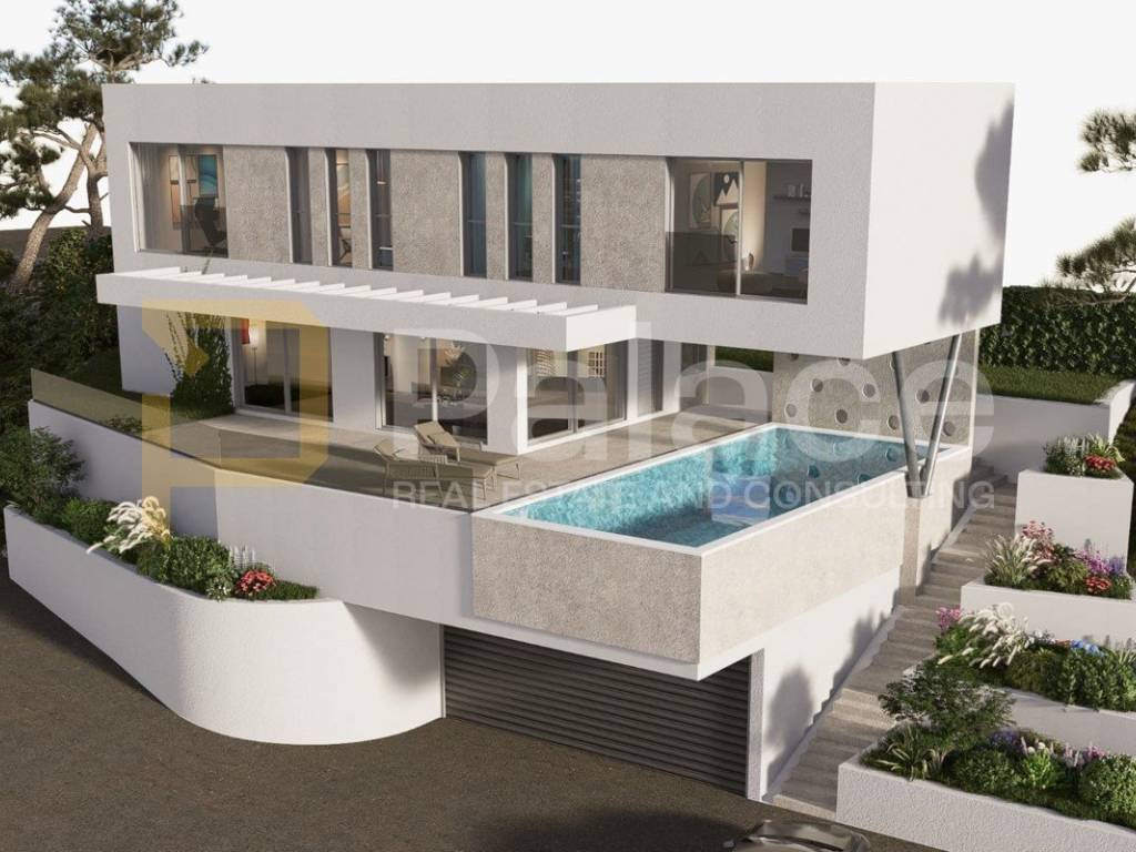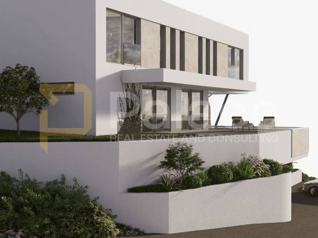 Situated in an elevated position on a 500 m2 plot, it offers a beautiful panoramic view of the sea and islands.
